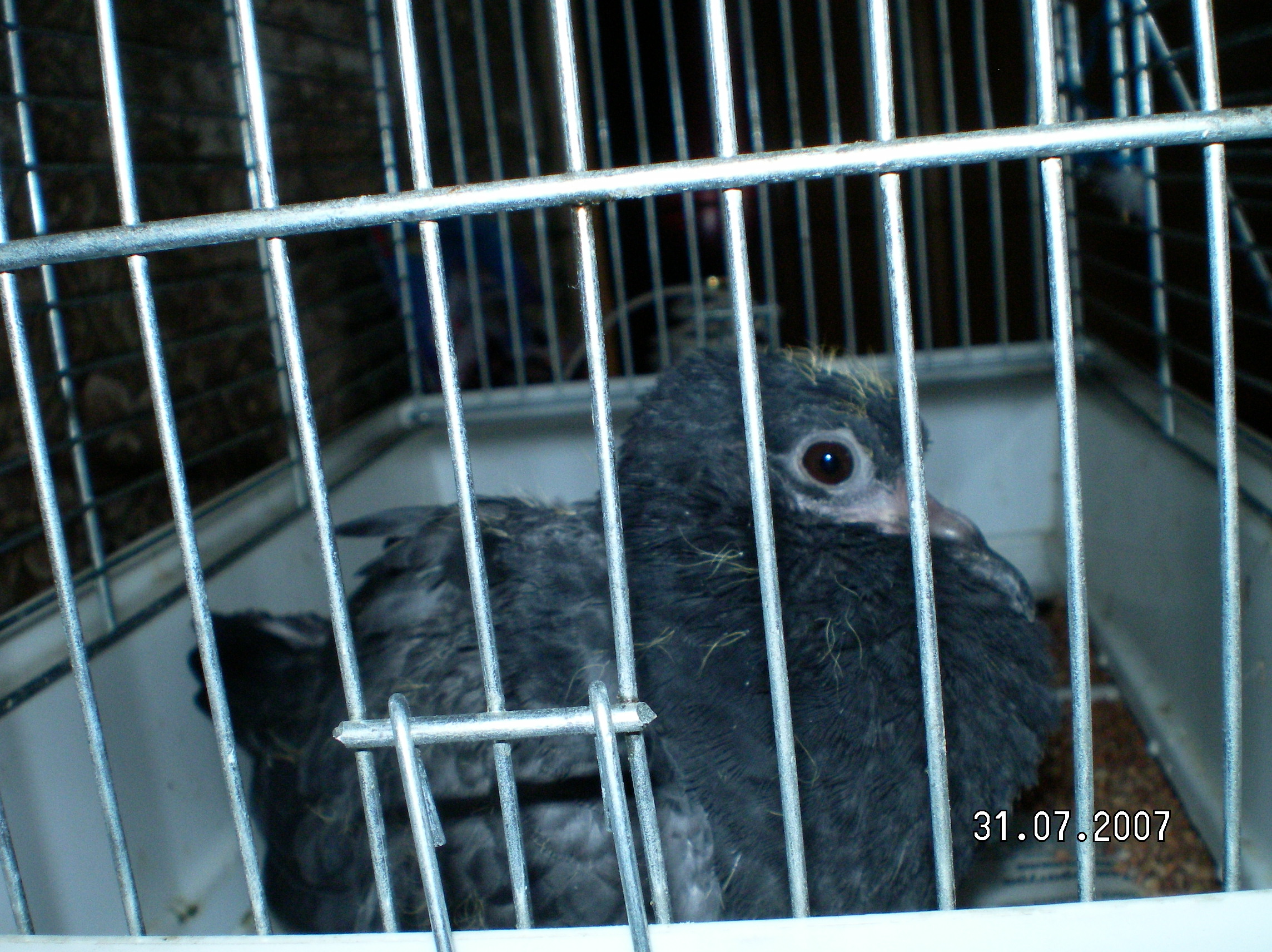 Так вот, вчера тороплюсь по делам, открываю дверь на лестничную клетку и вижу крысу, драпающую от меня в противоположный конец коридора. Но тут крыса раскрывает крылышки и становится понятно , что это птица- голубенок с коротким хвостиком, лысой шеей и подмышками. Ясное дело, наплевав на орнитоз и пр. болячки хватаю младенца и несу по адресу прописки, подыскиваю ему клетку, благо этого добра хватает, и за компьютер. Чем кормить, насущный вопрос. Понимаю, что скоро уезжать в отпуск и докормить кроху всеравно не успею, а желающих его забрать нет. Варим манную кашку (не сидеть же дитю голодным) и начинаем кормить. Сначала конечно облапала его всего- зобика нет вообще одна тощая шейка советской синей курицы. Он пытался нападать на руки и клевать, но унюхав кашу запищал по- птеничьи и начал бегать за руками как за мамой- так трогательно! Наелись. К тому времени стукнуло 11 вечера, мы с мужем бросив все лезем на чердак ( почему то он был открыт), а там хоть глаз вырви- ничего не видно, но на то мы и живем в России, чтобы быть веселыми и находчивыми- мобильник ведь не только для того, чтобы звонить. его еще можно использовать как фонарик- очень функциональная вещь!. Возле входа расположилась голубиха с выводком, мы решили оставить нашего малыша неподалеку от нее.