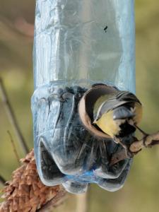 Сегодня насыпал карман семечек и пошел заполнять кормушки в лесу. Также на скорую руку из подручных материалов слепил кормушку, чтобы подвесить ее в приглянувшемся мне месте.