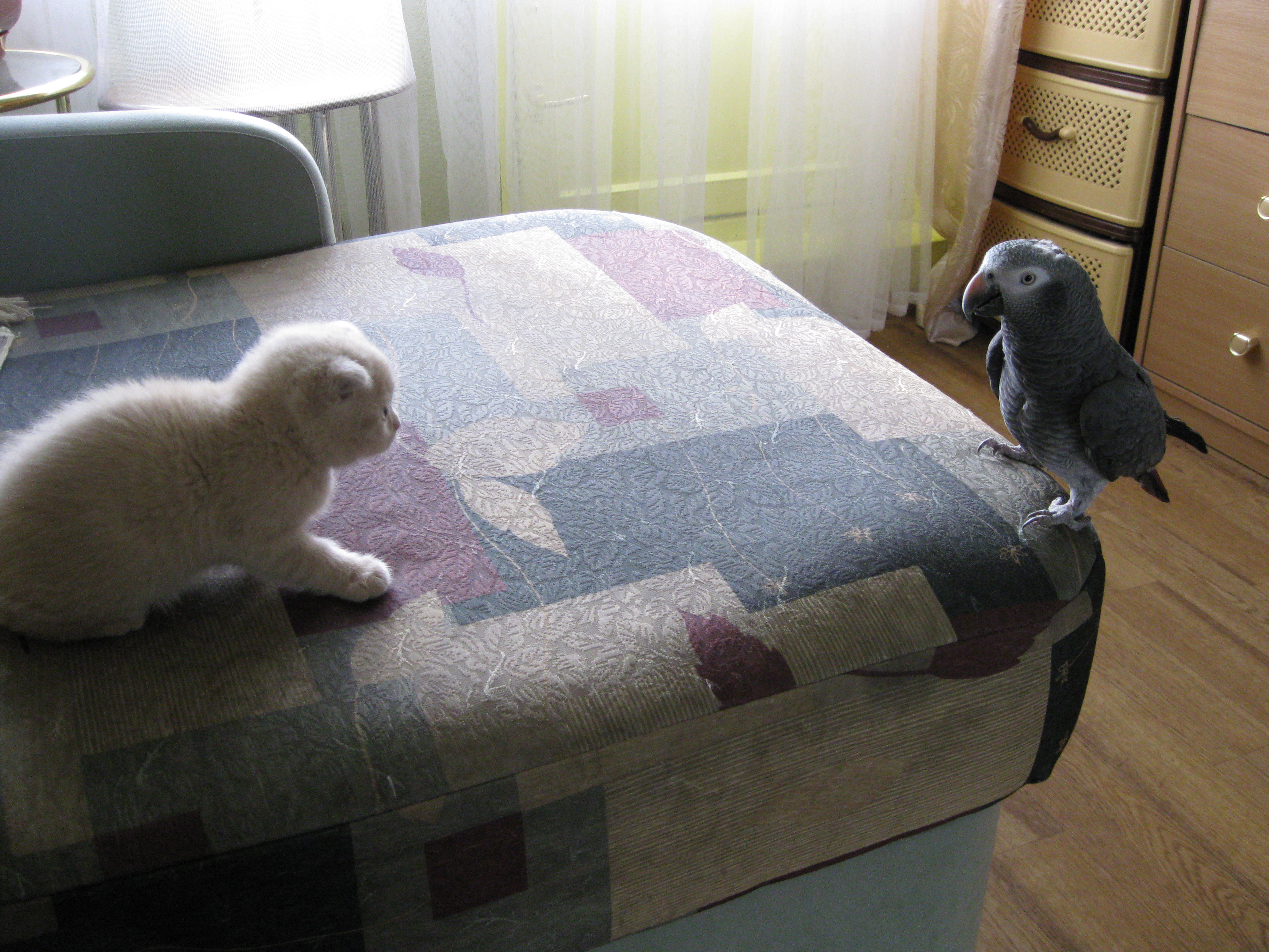 Привыкают. Запись опубликовал Ars 24 мая, 2010 780 просмотров Поделиться https://www.mybirds.ru/forums/blogs/entry/5305-privykayut/ Поделиться Подписчики 0 Ходят друг за другом.Приглядываются. Гоша стал подражать коту и периодически разгребает лапками в одном углу клетки всю подстилку ,раньше такого никогда не было.Туалет котяры рядом и процесс виден Гоше. 0