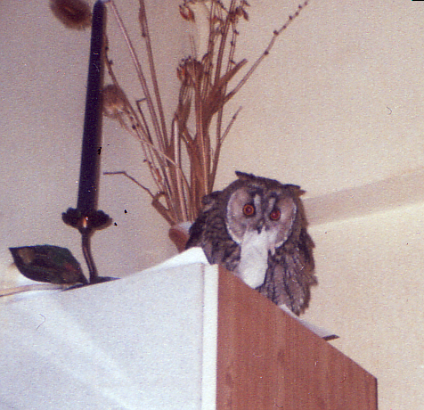 Бривух первые дни вухал, очень долгий, глухой и тихий: "В-в-у-у-у-у-у-у-у-у-х-х-х". Или звонко и отрывисто крякотяфкал. Теперь, спустя три недели, после постоянных игр в "зарницу" с котом – он мяучит…!!!??!!! Звонко, отрывисто для совы и похоже на глухое мяу сопливой кошки с аденоидами, которой прищемили хвост (не знаю, как по другому объяснить). Не сочтите это маразмом любящей мамаши, но это не только я заметила, у меня ребенок подколол, мол, не могло ли у нас быть прабабки попугая. Да и сейчас, хоть мы уже привыкли, но все равно на каждое его «мяу», вздрагиваем и бежим смотреть, не порвал ли он кота на кусочки...