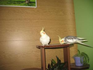 Ларри учит новые слова, все чаще кажется, что он говорит "умничка" и "хорошо". Ромочке уже год, стал большим, даже больше Ларри. А когда раздувается в шарик, вообще в два раза больше. Сейчас похолодало и у них на лоджии вместо 30гр. днем, стало 22гр. Как результат Ларри холодно - сидит нахохлившись и дуется на меня, как будто я могу погодой управлять ![]()