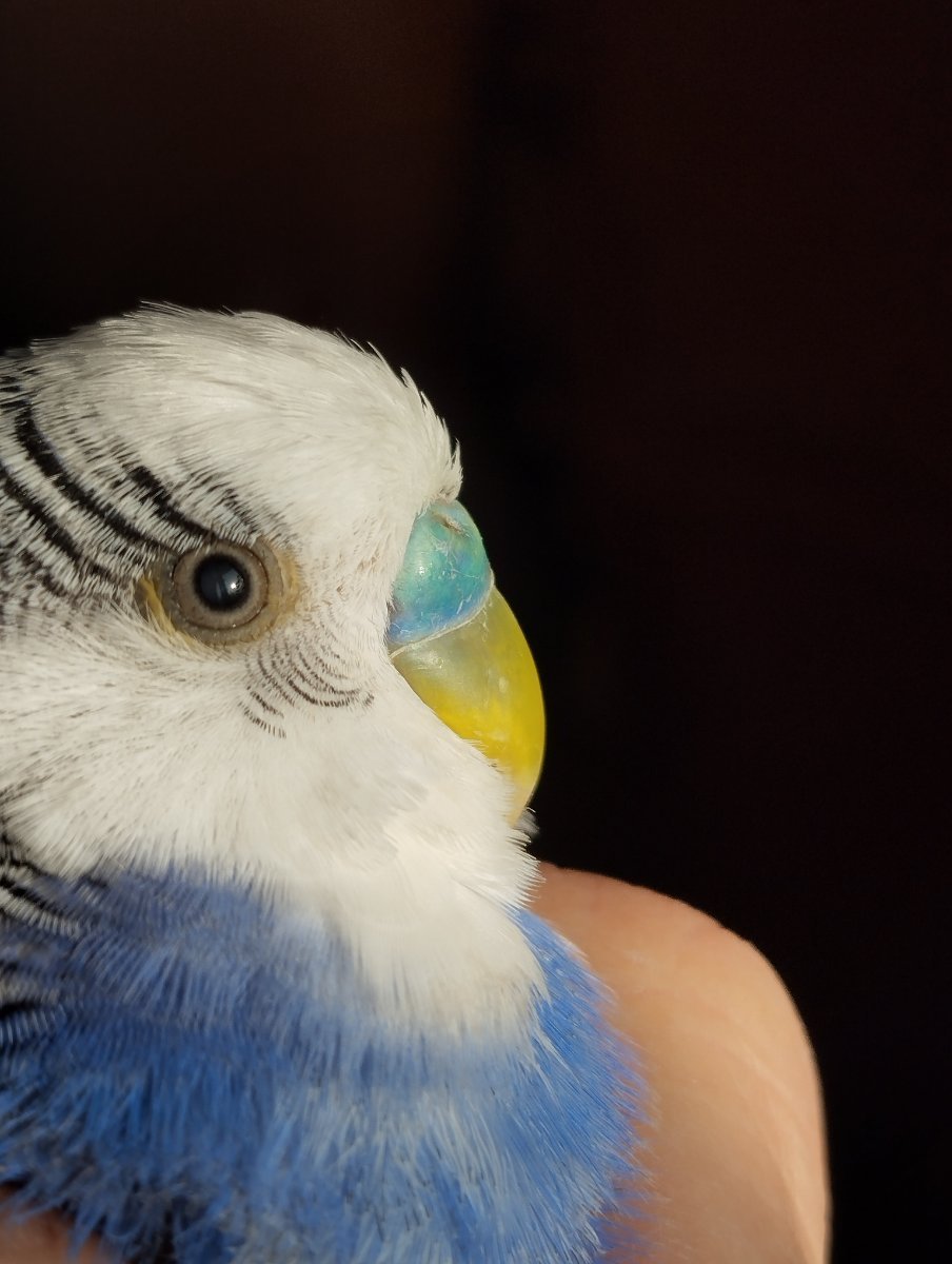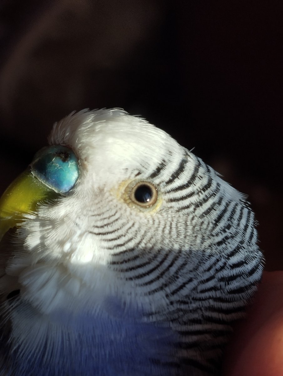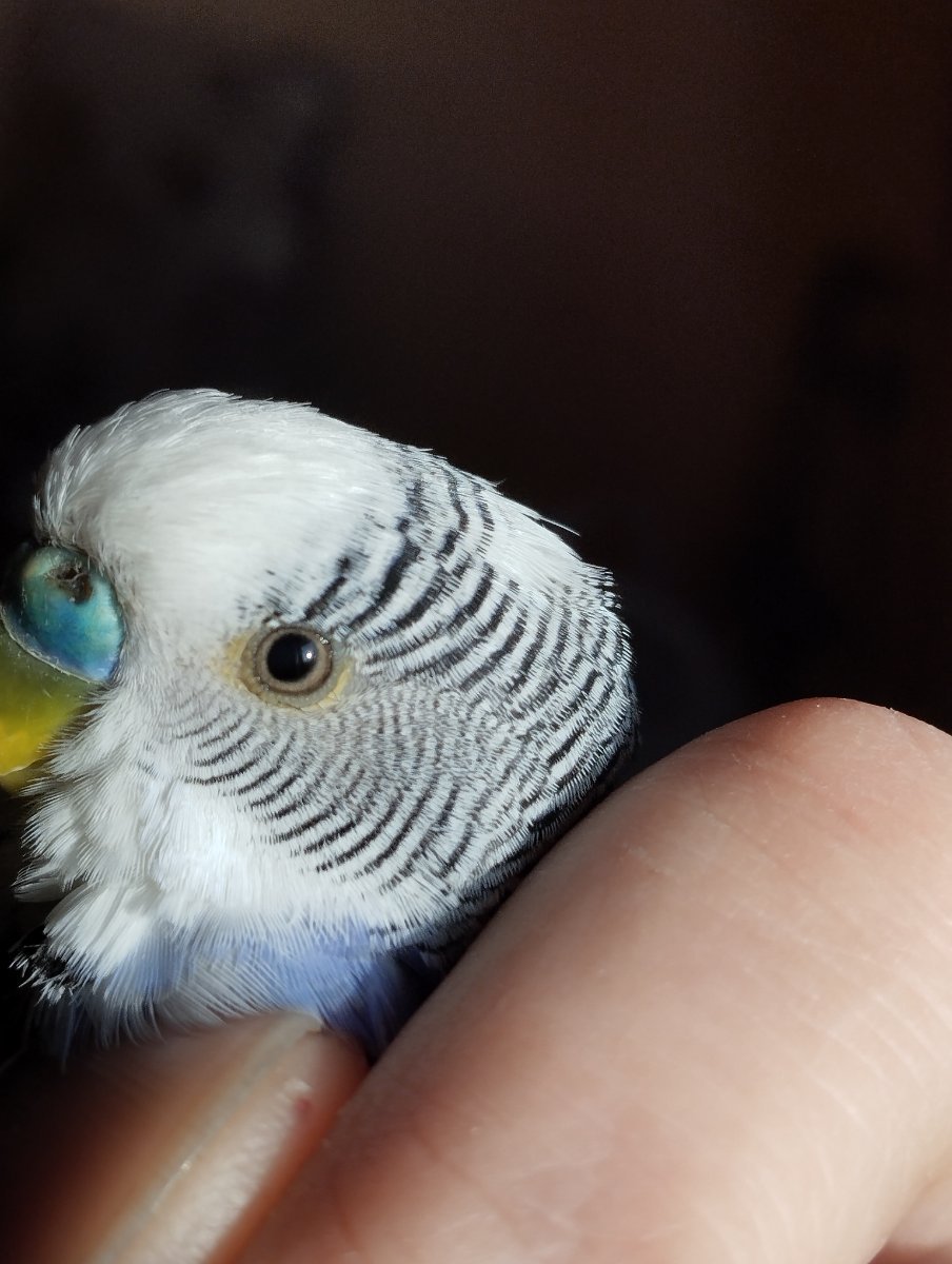 Зрачок на свет реагирует, да. Если выставить на солнечный свет, или если посветить фонариком на глаза в темноте, то зрачки сужаются. Что касается катаракты. Я смотрел в интернете фотографии попугаев с катарактой, и у них в глазу видно серое пятно. В моём случае, таких пятен в явном виде нет (см. фото – на некоторых фотографиях видно что-то похожее на серое пятно, но это может оказаться просто бликом от окна). Другой признак, про который пишут – птицы с катарактой часто чешут глаза. В моём случае, попугайчик тоже периодически чешется, - но он чешет не сколько сам глаз, сколько область вокруг него – т.е. лоб и примерно те места, где у человека расположены надбровные дуги, а также виски и скулы. То есть если катаракта там и есть, то в самой начальной стадии. У меня была версия проблем со зрением, так как есть признаки того, что попугайчик стал хуже видеть в сумерках. Но я думал, что дело тут может быть в нехватке витаминов и/или плохом освещении. Как я уже говорил, из зелени попугайчик есть только укроп, другие овощи-фрукты, включая морковь, игнорирует. Что касается освещения, клетка расположена с северной стороны, и туда редко поступает прямой солнечный свет, поэтому в комнате часто бывают включены люминесцентные лампы. Но в целом, и в комнате, и в клетке попугайчик нормально ориентируется. Можно ли отличить катаракту от других проблем со зрением, например, таких как близорукость, дальнозоркость, куриная слепота и т.д.? Ведь у людей, например, эти явления встречаются гораздо чаще.