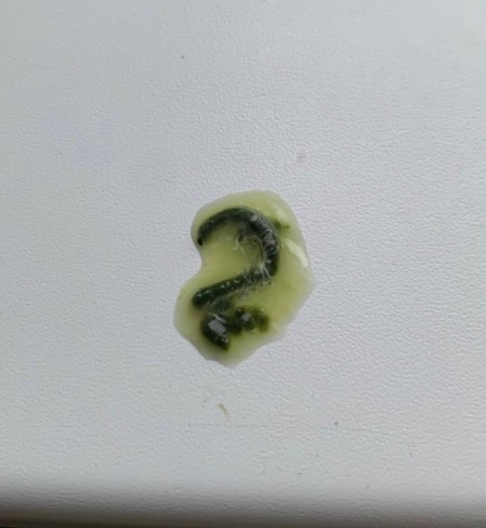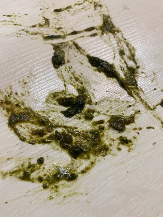 Сейчас помет такой. В жизни он более светлый и желтый. Фото прилично темнит. Наконец-то у нас начинает появляться нормальная белая паста.