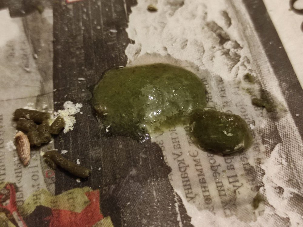 отчет на третий день лечения Амоксиклав Нистатин Гепатовет Тилозин + Гамматоник в поилке. помёт у него разный бывает сегодня когда утром убирал то что он за ночь накакал все какули были зеленого цвета крендельком. но в течении дня какуля была разная (см. фото). глазик вроде как по лучше но все равно опухший и вокруг засохшие выделения (можно ли их вытереть?). Тилозин пришёл всего лишь только вчера (среда), то есть эффект еще малозаметен. малыш все также чихает и с соплями которые разлетаются по сторонам, особенно их хорошо видно на стекле. и ещё появилась сипота при дыхании (см. видео). стал довольно прытким, носится по сторонам когда я пытаюсь его взять иногда может улететь, если чувствует что я начинаю ему слишком доверять что он послушный . и он явно рвётся в небо, хотелось бы чтобы он погулял но он улетит и не выживет . вес его на 23 число аж 205 грамм! 20 числа было 199. кушает хорошо часто, но в основном только мелкие семена, и всякую зелень (огурцы свежие зеленые, капуста, салат) он особо не ест. также клюет минеральную смесь рио и голубиный камень. https://youtu.be/PDoRP80ainI еще иногда когда я вижу что он скучает, я включаю какое нибудь видео с голубями ему, и он смотрит с таким интересом 😅 -