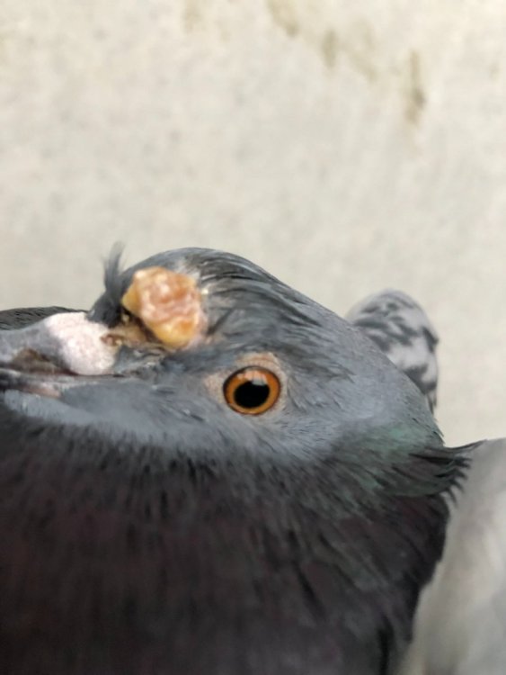 Добрый день! Примерно неделю назад обнаружила у своей домашней голубки шишку на голове, фото прилагаю. Что это может быть и какие меры предпринять? К врачу попадём не раньше, чем через неделю. Предыстория: голубка живет у меня 9 месяцев, с прошлой зимы. Причина - отсутствие маховых перьев на одном крыле, летать не может. Была активна, с хорошим аппетитом. Примерно месяц назад заметила, что стала малоподвижной, перестала есть, при осмотре обнаружила небольшие наросты в глотке, стала лечить от трихомоноза. Уже спустя несколько дней ей стало значительно лучше, глотка очистилась и стала розовой, аппетит вернулся и я перестала давать лекарства. А теперь вот появилась шишка. При этом птица ест, ведет себя как обычно. Что посоветуете? Возобновить лечение от трихомоноза? Или это что-то новое? Заодно про перья спрошу - есть шанс их отрастить?