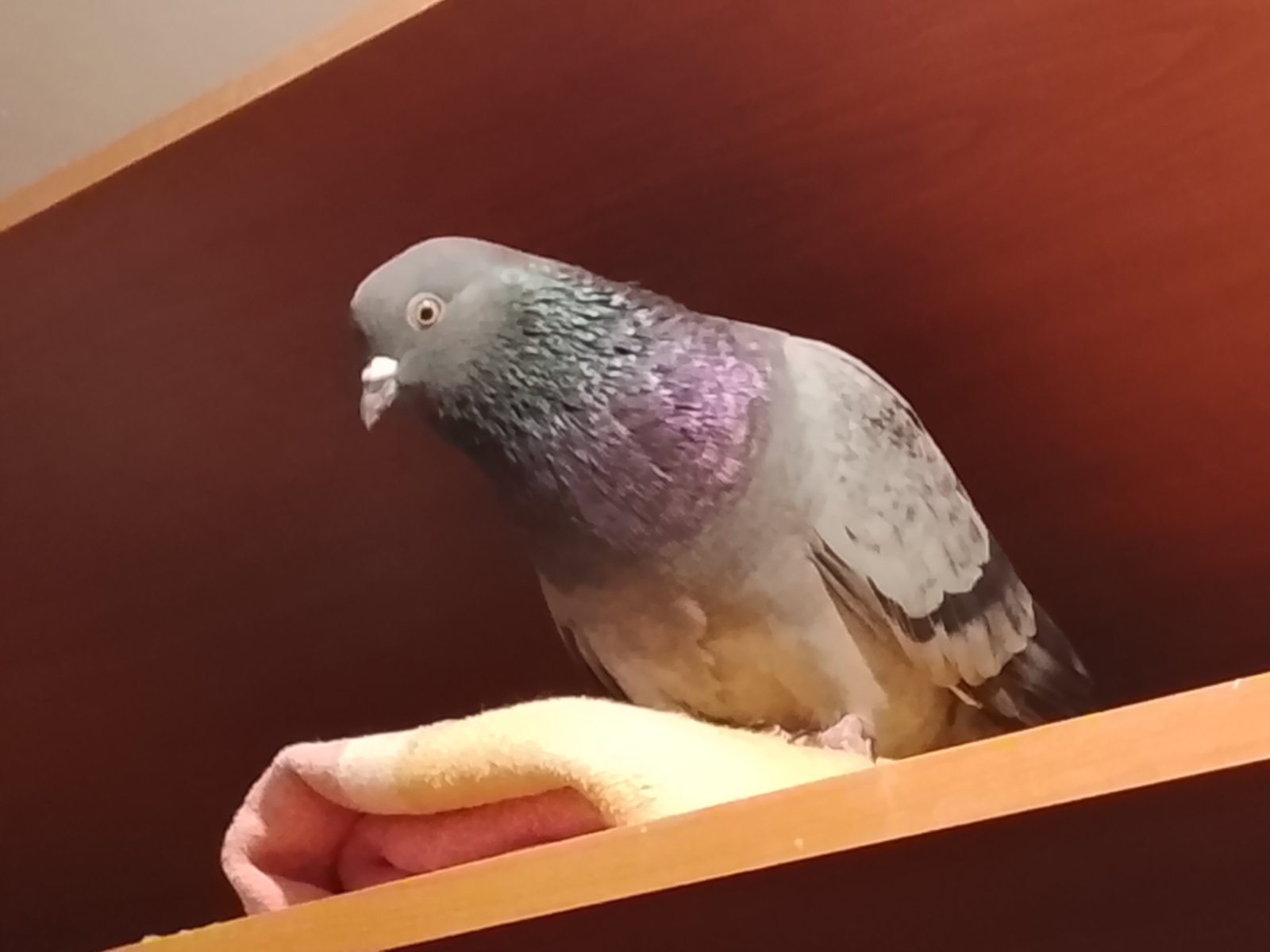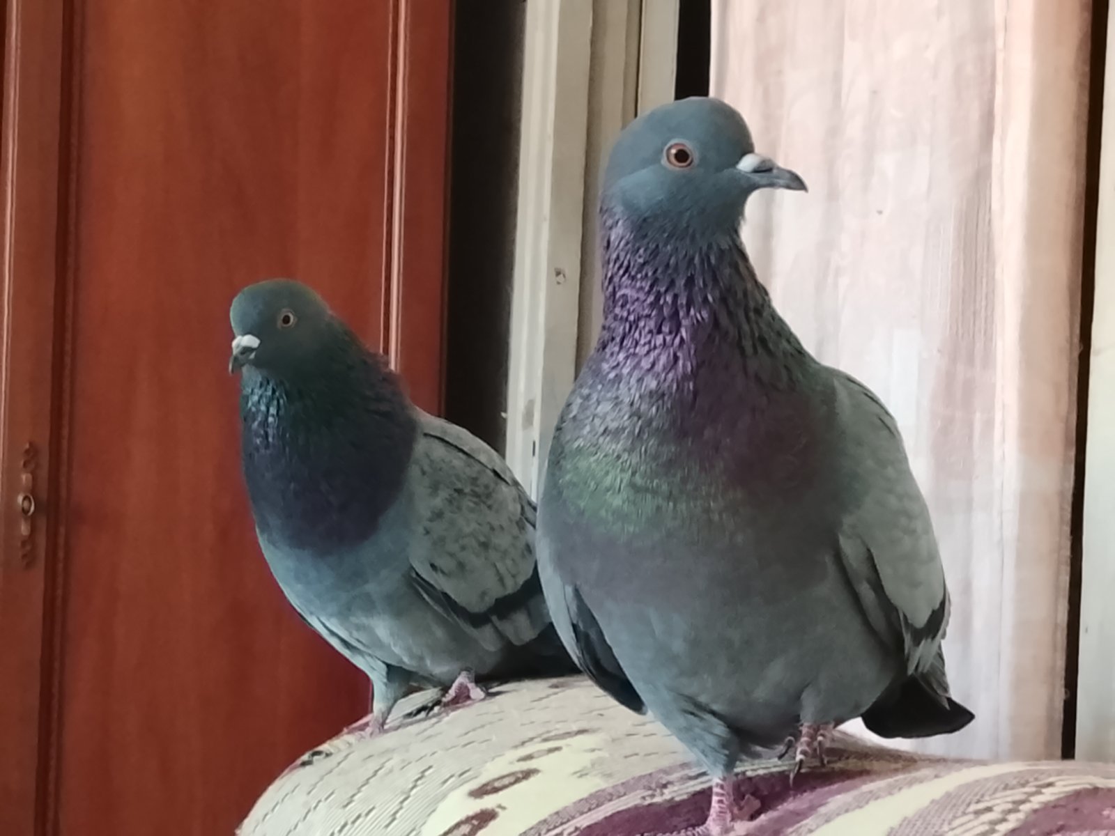 Балкон не застрелен. В нашем случае "на балкон" - это фактически на улицу. Соседи не хотят слушать "завывания" с квартиры и грозятся судом, милицией и т.д. Я признаю, что эти двое разговорчивые и голосистые. У меня ручная голубка пятый год живёт, и ее им не было слышно. Но тут, конечно, не только в этом дело. История тянется с лета, когда заприметили птенцов на балконе. И субъект сверху раскрутил истерию, что это источник заразы и погибель окружающему человечеству. Я не собиралась обзаводиться двумя голубятами: надеялась, что родители их вырастят, и все разлетятся. Но ситуация накалилась. Поэтому тут дело принципа. В парадигме соседей нормальные люди голубей в квартире не держат. Поэтому пытаются "дожать", а повод найдется. Фотограф с меня так себе, и они непоседы. Кину несколько. Они в разном освещении по-разному смотрятся