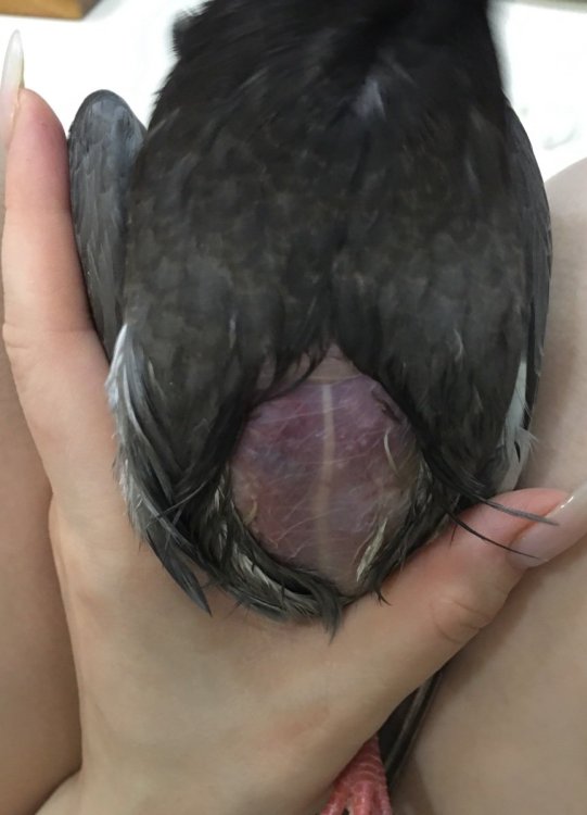 Если судить по фото, то у него ожирение. Грудка на ощупь какая? Можно сказать, что рыхлая? Сейчас инъекции перестанем делать, посмотрим поменяется что-то или нет. И киль кривой, у него рахит. Вы ему глюконат кальция давали, напомните, пожалуйста? Не страшно. За лапку, я думаю, можно не беспокоиться а на спинке плохо видно, точно только корка и больше ничего нет? Скорее всего, связано с дачей лекарства. Видимо, все-таки что-то не так пошло. Но следите не повторится ли это.