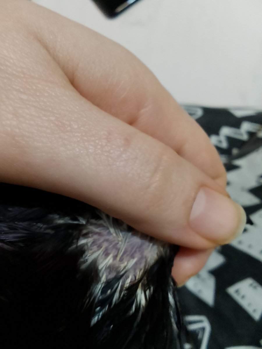 осмотрите под перьями с обеих сторон каждого крыла нет ли синяка