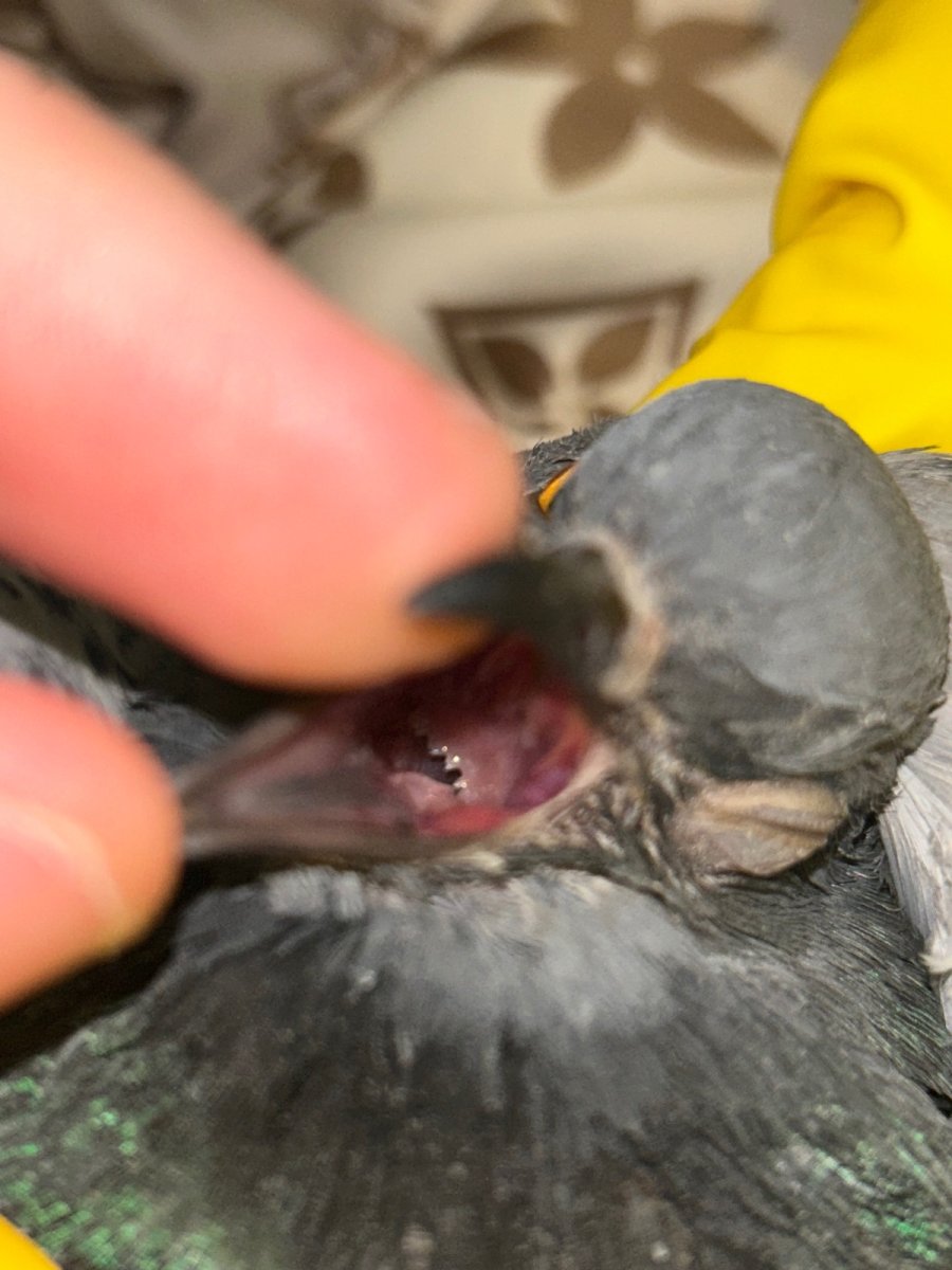 Все здравствуйте! Вчера утром нашла на улице голубя, оба глаза были в твердом гною, он ничего не видел, истощен. Есть нарост 1 у клюва. Гной и нарост бежевого цвета. Говно было ярко зеленое, сегодня светло желтое. Промыла глаза, очистила, закапала Omnix. Много выпил воды вчера, но не ел. Давала доксициклин с водой немного. отварила гречки. Сегодня он весь день ничего не пьет, не есть, сидит еле еле, напыжился, хвост и крылья опущены, голова в среднем положении, глаза чистые, но закрытые, бывали хрипы при дыхании, иногда приоткрытый клюв. У меня ни попросить ни самой съездить к ветеринару вчера, сегодня, завтра не получается, тк я работаю помогите советом, пожалуйста Фото не сделала ДО, сейчас он чистый, только нарост остался.