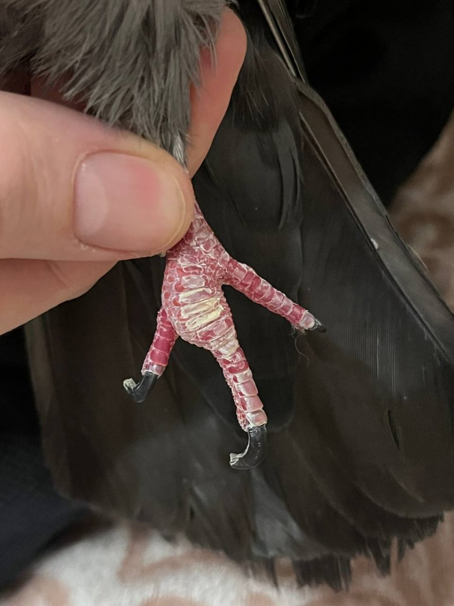 Что-то шишка на пальце растет. Так же, обнаружил довольно большую шишку в районе плеча (того крыла, которое не работает) - немного подвижная, с плотным содержимым внутри (шишка на пальце тоже плотная). Помет все такой же не сформированный - серо-зелено-коричневая масса. Я что-то подозреваю, что у него сальмонеллез в суставной форме. Думаю, купить завтра Байтрила и пропоить курс. (Зося так вроде писала: Доза по голубям- 12-15 мг/кг каждые 12 часов, орально, под прикрытием нистатина (500 000 ед на кг в сутки)). Анализы я думаю, что не смогу сдать - у меня есть опасения, что другие птицы могут заразиться - хоть этот голубь и изолирован, но все же.