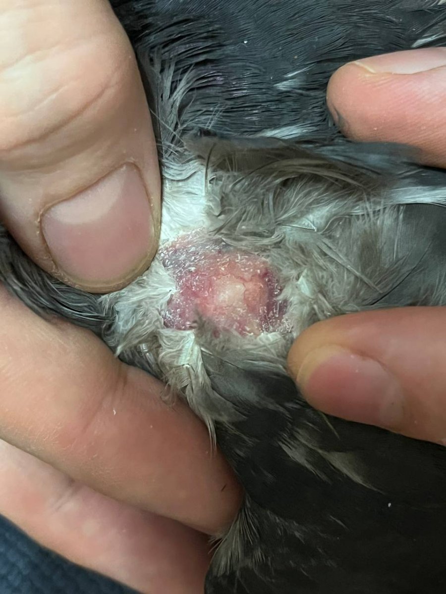 давайте подключим амоксиклав (если аналог то ОБЯЗАТЕЛЬНО с клавулановой кислотой) под перьями в этом месте ничего не видно?