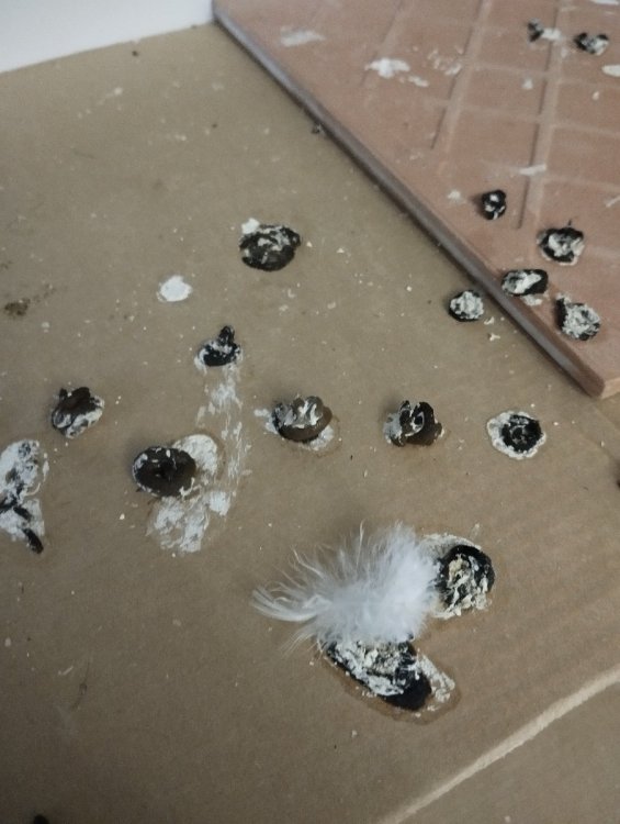 Да, стали толченую скорлупу ему давать. Поставили снова Рио минералку. Ест он по-прежнему насильно. При самостоятельном клевании еда из клюва выпадает, к сожалению. Однако цельные семена расторопши не выпали. Много не даю, штук пять, все пять склевал. Вчера дали щепотку бурого риса. Он почему-то тоже склевался. И ракушечник с кирпичом РИОвский. А вот полезный булгур с перловкой не склеванные остаются на полу. Там же валяются чищеный овес, два вида гречи, маш, сечка. Почему-то голубочек разучился их захватывать. Они интересны - при насильном кормлении он пытается хватать сам. Но выпадают( Это был именно кошмарный травмо-синяк, не болезнь. Видимо, от укола, держался неделю, залил синевой всю ногу. Мазали левомеколем. Он стал спадать. К суставам до сих пор вопросы, но сфоткать не могу, вертится.