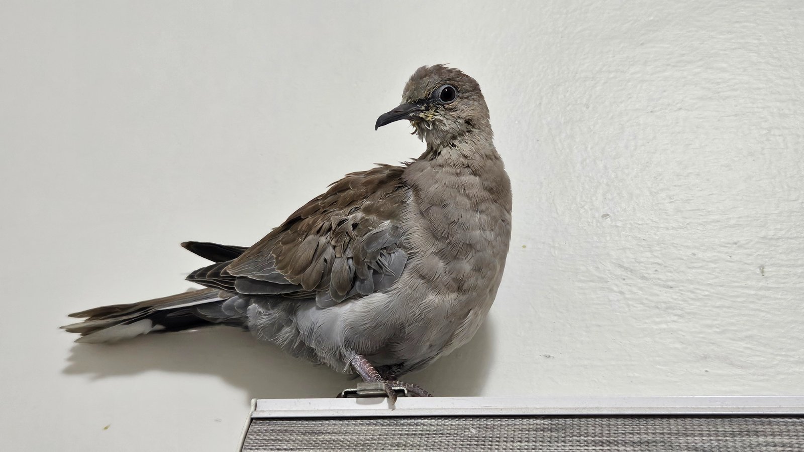 Маленький голубь примерно 30ти дней. не летает не ходит