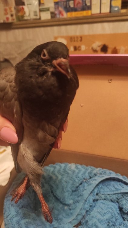 Спасибо большое за помощь всем кто попытался нам помочь. Мы к сожалению не справляемся, голубя сегодня покормили, сперва 15 мл, с пустая часа полтора 7мл. Конечно каша которой мы кормили более волнистая. Зов не твердый но все ещё выглядит полным. На вечер кормить его не стала, то есть за весь день он съел 22 мл еды. Воду он тоже пить отказывается, стал тяжелее дышать, слишком вялый и грустный по поведению. Хотя ещё вчера он выглядел бодро. Ветеринар как только его увидел, сказал надо усыпить, медикаменты такие как антибиотики и обезболивающие я достать не могу. Очень расстроены все мы что так получается. Приняли решение что отвезём к Волонтёрам, у них там есть знакомые врачи, может они смогут ей/ему как то помочь.- 18 ответов