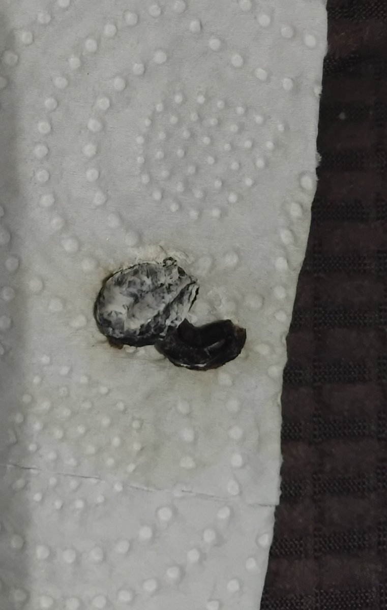Добрый вечер. Сегодня не получилось проглистогонить- вызвали с выходного. Утром Фира поела сама. В обед я пришла ее покормила это было около двух. Убрала еду, ушла. Сейчас пришла и ее при мне вырвало непереваренным зерном с водой без слизи и запаха. Поставила еду, Фира стала есть самостоятельно. Т.е. получается что с 14 до 20 зерно не переварилось с предыдущего кормления. В обед она съела 8-9 гр. сухого зерна. Может это много для разовой дозы? А вот теперь вырвало со слизью. Запах киловатый, едва уловимый. Фото на салфетке - это тоже, что было в кормушке. Состояние у птицы не изменилось: чистит перья, гукает. Что это теперь за напасть?! Что и как давать из лекарств: нистатин и флуконазол? Никогда с таким не сталкивалась. Глистогонку, наверное, перенести надо теперь?