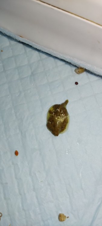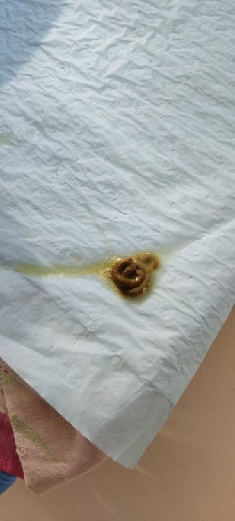 7й день как голубёнок принимает Амоксиклав Нистатин Гепатовет +Гамматоник в поилке, и 6й день как Тилозин. Вес утром 207 грамм, к вечеру 17:40 вес 221 грамм. малыш заметно подрос за 17 дней. сзади где были выдраны перья, начинают пробиваться новые и на хвосте много пуха появилось, отросли и остальные перья, он стал более пушистым и мягким, под крыльями также растет много перьев и пуха. также он стал ооочень резвым, прыгает, бегает, летает, порой когда я хочу его взять чтобы дать лекарства то у меня еле получается с ним сладить, он оочень сильно стал вырываться, как будто его кошка поймала, и единственный его шанс на выжить это любым способом вырваться из лап. помёт у него разный, бывает нормальный, бывает жидкий, цвет также от зеленого до желтоватого. (см. фото) глазик стал получше, но вокруг все также опухшее. заплываний, выделений и прочего особо не заметно и глазик какой то овальный по сравнению с другим, тот круглый хорошенький выглдядит здоровым. помимо корма, давал ему немного запареной гречки. как только я подошел с этой герчкой, он начал пищать и подергивать крыльями, и писком начал ее быстро быстро уплетать. также ему предлагал натёртую морковь и яблоко, но он есть их не захотел. ещё проблемка: он постоянно рвётся в окно прямо в стекло и бьётся об него. читал что нужно понести его так чтобы он коснулся клювом и грудью, но это не помогает. и ещё мне сложно давать ему гепатовет, когда я его даю ему в клюв небольшую часть он проглатывает а потом начинает во всю мотать головой и часть летит во все стороны. есть какой то способ более эффективно это делать? я пытался немного воды добавлять в шприц с гепатоветом, чтобы он не был таким густым, но все равно часть разлетается. -