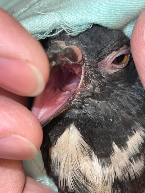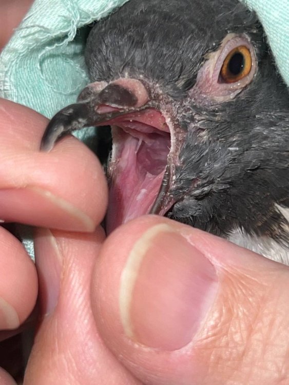 2. - очень осторожно (давая отдышаться) осмотрите и ощупайте горло (в том числе под клювом) нет ли наростов или налёта Есть налёт во рту, белый в клюве (фото в сообщении выше) и около дыхательной щели, желтовато-белый в глотке, в глотке много,( сфотографировать именно глотку не удалось, т. к. голубем занимаюсь я одна, одной рукой нормально раскрыть клюв чтобы было видно глотку мне сложно). Из клюва ощутимый тухлый запах. - очень осторожно (не задушите!) проведите пальцами вдоль вдоль шеи нет ли шишек и наростов На ощупь 2 шишки симметрично расположенные на шее под кожей (возможно лимфоузлы?), других не нащупала. - очень осторожно (давая отдышаться) проверьте тоненькой ватной палочкой нет ли во рту вязких слюней или слизи При детальном осмотре не было, но изначально мне кажется что были, когда я в первый раз в клюв полезла, густая коричневатая слизь. - осторожно нажмите на восковицы (мешочки над клювом) не полезут ли сопли Когда осматривала клюв из ноздрей выделялась прозрачная жидкость - послушайте спинку Хрипов и шумов нет. От помета тоже сильный тухлый запах. Фото помета прикладывала выше. Почитала форум, по описанию запах - трихомоноз. Заказала орнидазол. Он подойдет? Но не знаю, получится ли споить катетером (горло все в налётах). Катетер нелатона будет послезавтра (уже завтра), сейчас есть обычный внутривенный. Может ещё иньекционное что-то, метронидазол-метрогил? Кандида мне кажется тоже есть. Для печени что лучше - карсил или гепатовет? У него с печенью судя по помету все плохо. Или может можно что-то в уколах для голубей? Я не уверена что это она, Вы уверены по фото? Я склоняюсь к тому что у него тризомоноз+кандида, но не уверена конечно, потому что наростов как таковых не нашла. Просто боюсь что если и оспу на всякий случай сейчас начну лечить до кучи, то не выдержит.