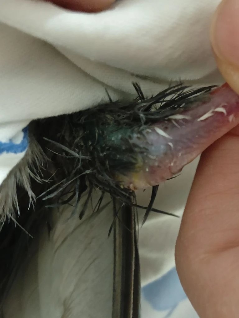 Правая нога не в фокусе получилась, левая нормально. Когда птицу брал в руки горячей она не показалась. Фото клюва тоже получились не в фокусе. То, что вчера не убрали там же и осталось (загнанные ваткой наверх ошметки на правой щеке). Возможно из-за того, что Ципрофлоксацин придавил палочку вылезло что-то респираторное, что до этого действовало бессимптомно. А вариантов много - микоплазмоз, орнитоз, туберкулез, аспергиллёз. Возможно завтра стоит подключить Доксициклин или Азитромицин.