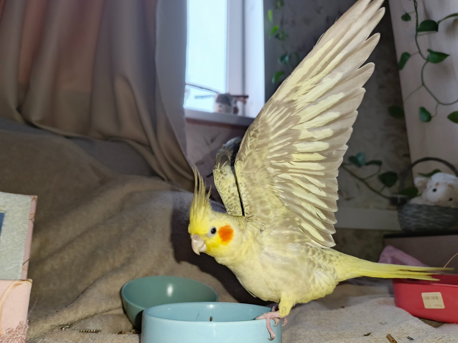 Добрый день . В конце октября 2025г . Приобрели в зоомагазине Александрийца, со слов продавца ему было 3 месяца , и привезли его в магазин заводчики в тот же день. Изначально попуг был контактный , в магазине брал еду с рук , поэтому с приручением проблем не возникло. Назвали Боря, дома он быстро адаптировался . Сейчас ему около 6 месяцев, кушает всё что предложить, но совсем сам не летает. Если с руки помогать то летит, а так чтобы сам ни в какую . Крыльями машет сидя на клетке, будто хочет взлететь но лапами вцепляется в клетку 😃. Собственно вопрос такой. Не надурили ли с возвратом, ну и в чем может быть причина не желания самостоятельных полётов. Из умелок: 3 слова и 1 фраза) -