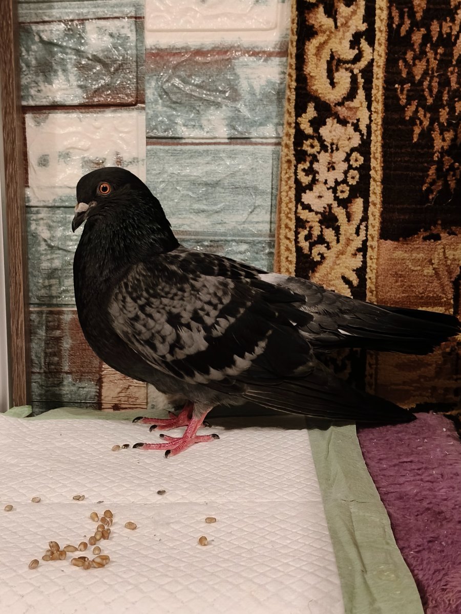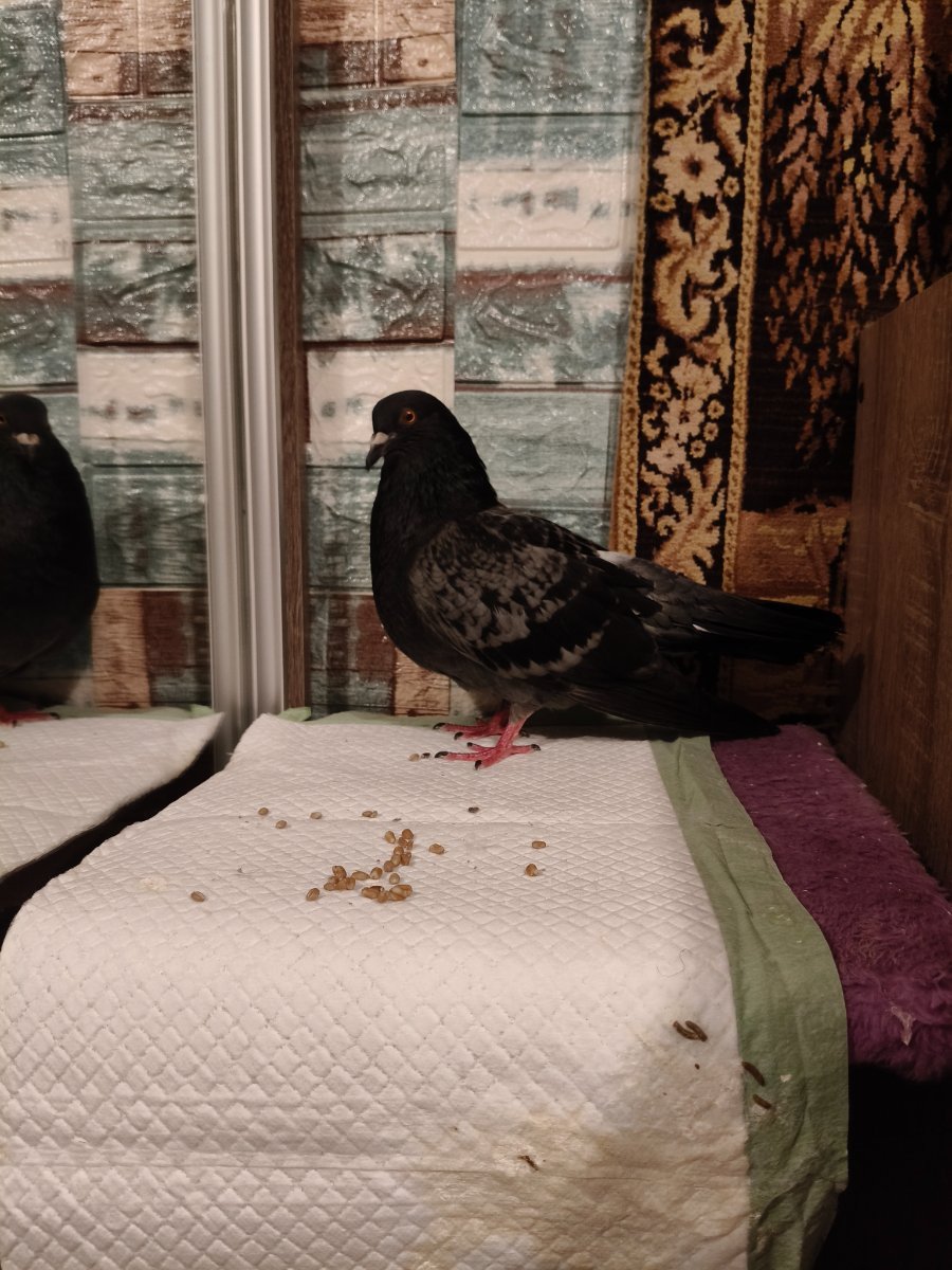 Простите! Это мне со страху показалось! Ракурс был не тот... Но есть другая проблема!!! Я сегодня выходная. Голубь вне клетки на пеленке на кошачьей когтеточке фактически целый день. Периодически заскакивает на край кровати, посидит там чуть, и обратно. Перед ним рассыпала запаренное с вечера зерно (пшеница и перловка). Пытается клевать, но всё мимо! Или вываливается из клюва! Прямо как у птенцов, которые только учатся клевать (( Признаков как у вертячников нет. На месте кружится только когда попадает на свою маленькую платформу (вроде как территорию защищает) и при этом громко гулит или на своё отражение в зеркале. Со стола замечательно влетает в открытую дверцу клетки. Голову не запрокидывает, координация нормальная. А крыло так и подвисает грустно(( Голубь всегда повернут именно им в мою сторону.