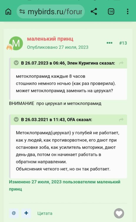 Елена Назарова ответил Елена Назарова тема в Лечение голубей