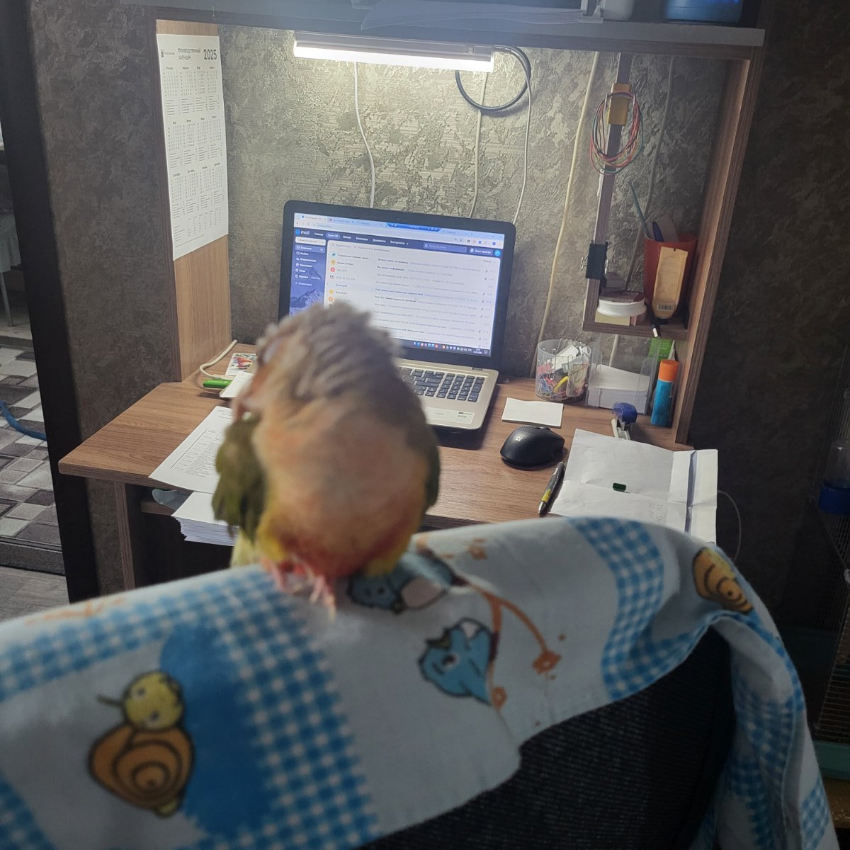 @Дабб1 Спасибо за развернутый ответ! Ну у нас не пикирует, слава богу, пока))). Присады есть, и саерху и сбоку, но боковые пока не использует, пока я его заношу в клетку, перед уходом из дома. Он особо не ругается. Я стараюсь все делать одинаково, чтобы ему было легче понять и запомнить. Он сидит на руке, я второй рукой аккуратно сверху нежно фиксирую крылья сверху, чтобы он чувствовал упор и был более стабилен, и заношу. Он спокоен, не кричит. Конечно, сразу начинает тосковать, когда мы рядом. Но сегодня, а я смотрю по камере, уже поспокойнее себя чувствует. Все клетки ставим поближе друг к другу, когда уходим. Заметил, что ему сложновато пересаживаться с кисти на плечо, пока не очень это умеет, боится потерять равновесие, он либо перебирает лапками по руке, либо если лицом ко мне, то просто сидит, пока работаем над этим. Зато так его всегда хочется поцеловать и прижаться, правда, вижу как он от этого не ноги устает, перестаю. Но разрешает целовать его в клюв и шею, прижиматься. Супругу выбрал фаворитом, возможно, либо мамой. Он при ее виде старается подлететь и сесть на нее. И постоянно как птенец издает попискивающие звуки. Со мной их практически не издает. Ведёт себя сдержанно. Я ему в первую очередь пытаюсь показать, что я вожак. Я его не боюсь, чего не сказать о жене), мне кажется, он ее считает очень безопасной и она всегда в халате, удобно и мягко. У меня большую часть времени монах сидит на плече, этот деятель выбрал меня своим фаворитом, практически постоянно на плече. Этим самым, возможно, немного подбешиваю жако, но он терпит, иногда садится рядом, но и монах и жако поднапряжены в эти моменты. Клювом жако щелкает, что плюс, движения спокойные. Один раз не сильно прищепнул монаха, но тот был слишком активен. Кстати, монаху около 6 месяцев, жако 5 месяцев. Оба выкормыши. Есть ещё корэлла мальчик, дикарь, куплен был в магазине, поэтому такой, с него все и началось. Дружит только со своей подружкой - какариком девочкой. Она тоже дикая, тоже из магазина, но со временем пообвыклась, стала кушать с ладони, меньше стала пугаться. Очень любит и очень хорошо летает. Корэлла вообще не летает, не может, как мы не пробовали. Они оба живут тоже в большой клетке вместе, очень ладят. Все, кроме жако, купаются и любят это. Жакоша купался, точнее пытался это исполнить в поилке, только один раз. Сразу попробовали взять распылитель и побрызгать на него, испугался, и мы сразу прекратили это. Пока не купается. Подумываю его приручить к душевой комнате. -