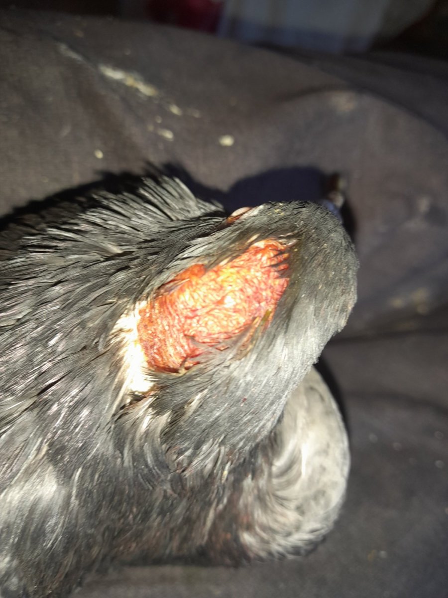 @Андрей235 @маленький принц @Ольга_с Швы снял, помазал на всякий случай йодом. Зажило всё отлично! Антибиотк и димексидин с новокаином не применял, хоть и купил на следующей день после рекомендации, поскольку шов был красивый, без каких либо признаков инфекции. Только мазал каждый день левомиколью. Жаль только, что за это время, подружечка его умерла. У уличных голубей сейчас эпидемия парамиксовируса. Не спас её, не успел, не сообразил, что действовать надо быстро, хотя и фоспринил есть, и витамины... Я её дней 10 назад к нему подсадил в коробку, она плохо тогда уже себя чувствовала. Меня сбило с толку то, что у неё в аомёте была кровь. Я стал давать им с водой тимокс (это местный, проверенный уже микс антибиотиков: метронидазол, тиамулин, и хлортетрациклин. Я подозревал у неё кокцидии, а голубь как раз похоипывал как при микоплазмозе. За неделю он перестал хрипеть, а у неё прошла кровь из помёта. Позавчера они выпили целую консервную баночку воды (оказалось, что это она её выпила), а утром она уже была мертва у голубя то иммунитет, он болел этим вирусом 2 года назад, покрученный был, но отъелся тогда, отпился. Я так радовался, когда они на балконе место для гнезда себе просмотрели. Эх... Сейчас ещё одного с балкона от парамиксовируса выхаживаю. В общем, спасибо большое всем, кто советом помагал, особенно @маленький принц !. Только хочу одну вещь сказать: при разрыве обширном, как в данном случае, когда весь череп голый был, единственный выход, это шить. Хотя бы как я, обычной хб ниткой. Правда, у меня иглы есть хирургические, лет 20 храню, и вот сгодились.