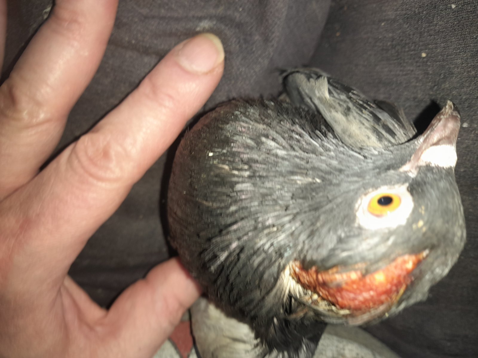Начал давать минеральную подкормку насильно (она мелкая, страшно, но стараюсь не закидывать глубоко, а в начало клюва на язык сыпать, чтобы не подавился).