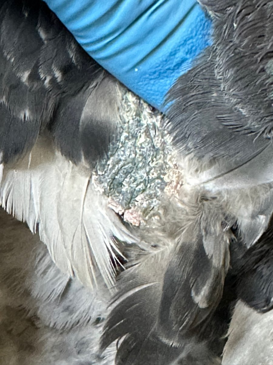 7. Подобрала голубя, сильно не сопротивлялся, летать не может, крыло левое висит, под крылом зеленая корка какая то. Хотелось бы подлечить и выпустить. Аппетит хороший, кал в норме. более менее активный. Думала перелом крыла, а тут еще такое .