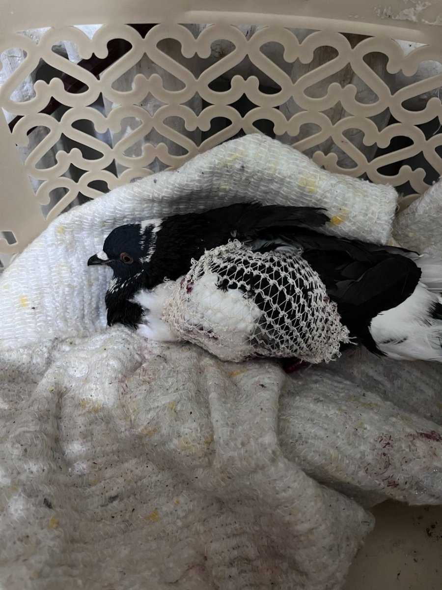 Можете переименовать тему в "Голубь с оторванным крылом"? В общем, не давал ему пока K1 - обработал просто рану хлоргекседином, обложил ватой и затянул сетчатым бинтом. Колю рингер-локка по 1мл каждый час (второй раз уколол) - на сколько я понимаю, он как раз при кровопотерях помогает. Поместил голубя около батареи. Давал ему пить - он много попил сам. У меня он получается уже чуть меньше 2 часов. Состояние не важное - тяжело дышит, сил почти нет. У него в общем оторвано крыло по локоть. Кость не торчит - локтевая и лучевая кость видимо вырваны из сустава. Не знаю, что с ним произошло - нашел около магазина в -30. Думал, мертвый - хотел выкинуть. Пнул - оказалось, что жив. Добежал с ним до дома, весь в крови. Очень много крови он потерял. Не знаю, что у ж с ним произошло. По итогу отпишусь - выжил или нет. спасибо, уколю