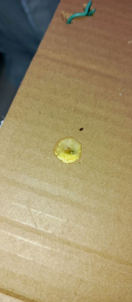 Ну вот был помет, выглядит так как обычно. Это на салфетке, я его собрала. Но птица на ноги вообще не встает( -