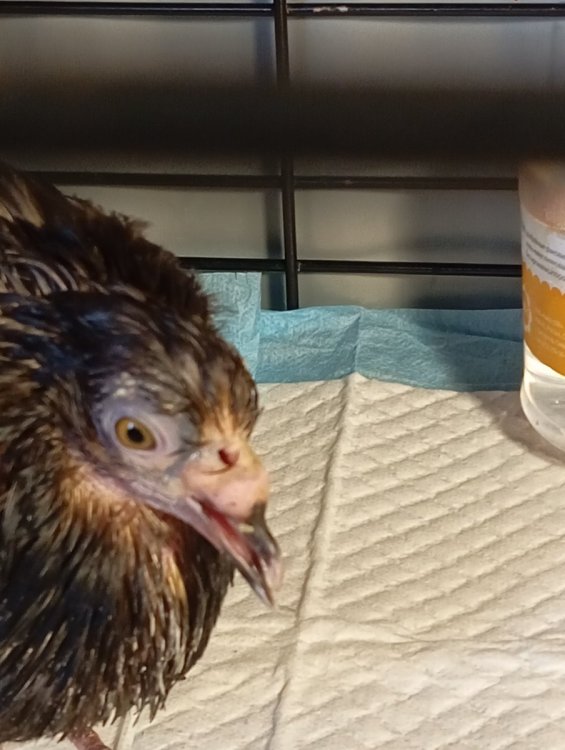 Три дня назад нашла в ветлечебницу, где молодой врач почистил образование в голове у птенца. Спасибо ему, что взялся - сама бы я такую работу не сделала. Клюв встал на место сразу же, что позволило птенцу клевать корм. На первом фото до операции, ватной палочкой я немного удалила из массы. 2я сразу после и 3я фотография на сегодня 3й день после чистки. Сказал промывать Хлоргексидином или физрастворои 2 раза день. Сверху закрывали полосками лейкопластырем на ткани, однако они птицей срываются или мешают есть. В последнее время ест с большим аппетитом и прибавляет в весе. Беспокоит - правильно ли промывать Хлоргексидином и то, что еду клюет с руки, то что в клетке на полу и в кормушке, а также вода маленьким не замечается. Через неделю выхожу на работу и не смогу кормить сама.
