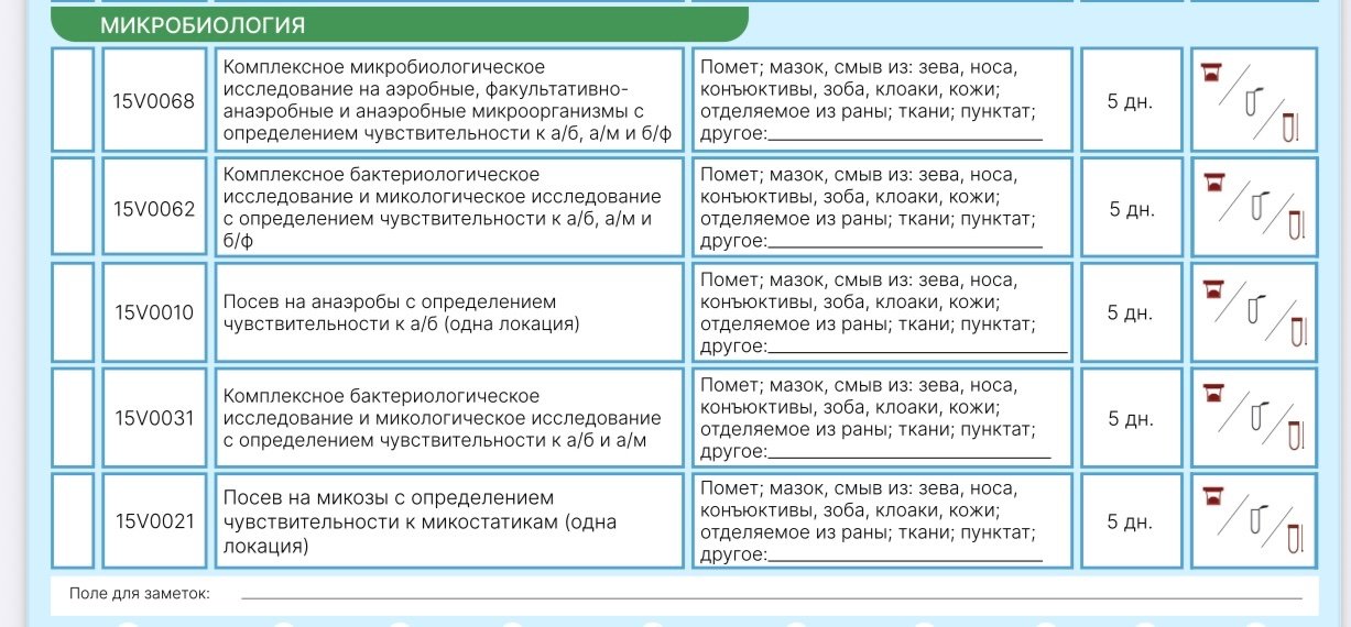 Связалась с Архимедом. Сказали нужно точно знать какой анализ. Сказали, что в нашем случае это раздел микробиология. Но все равно надо знать какой конкретно сдавать.