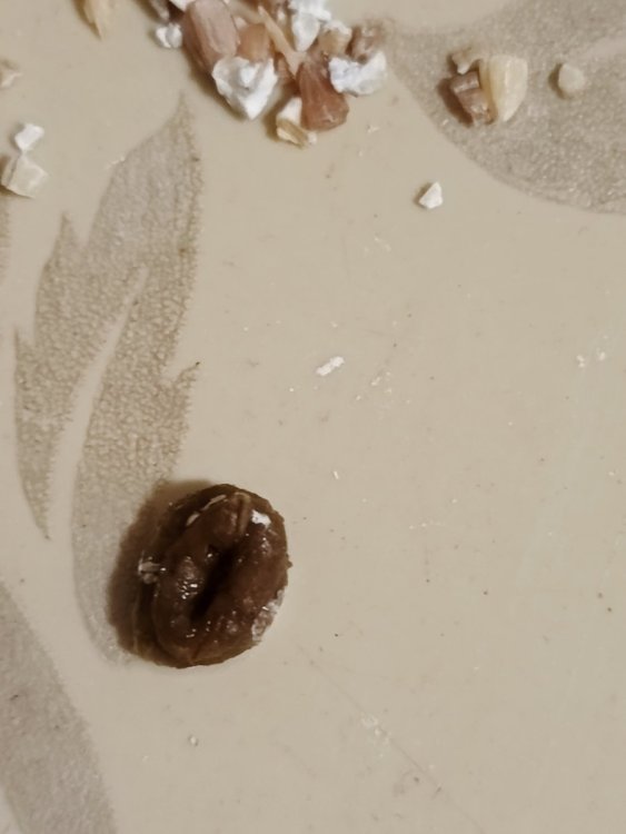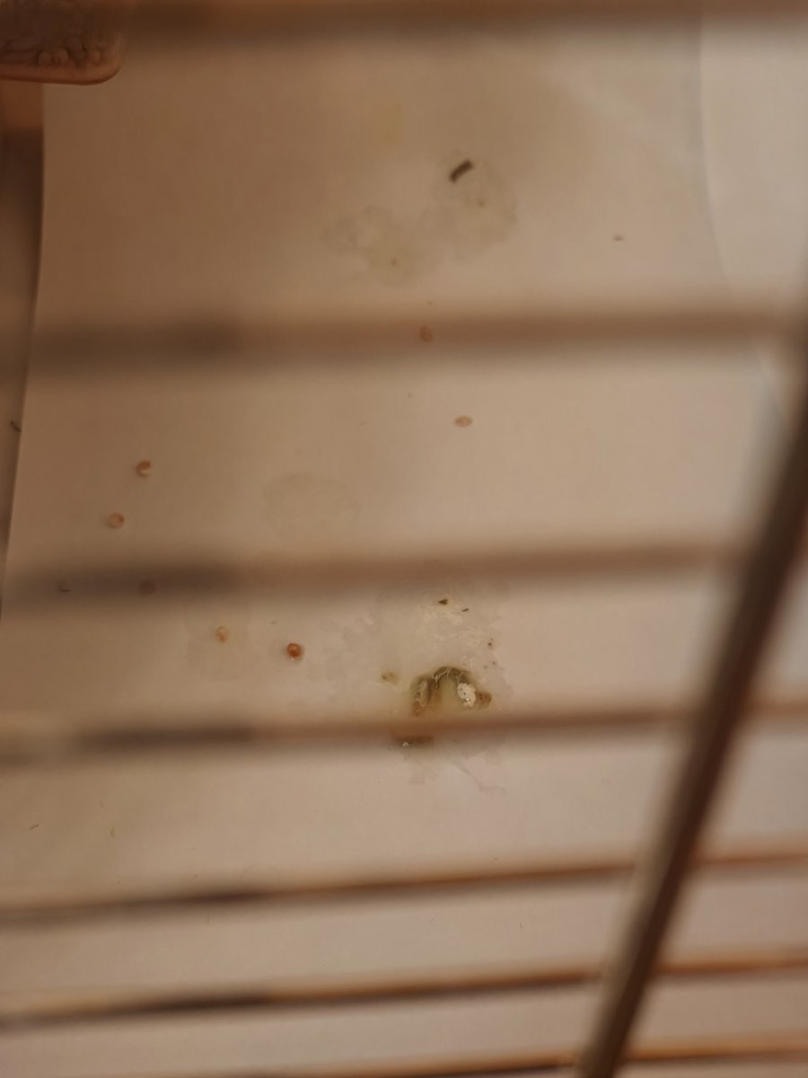 раз в сутки сегодня помёт к вечеру как выглядит? высохший помёт кристалликами не блестит?