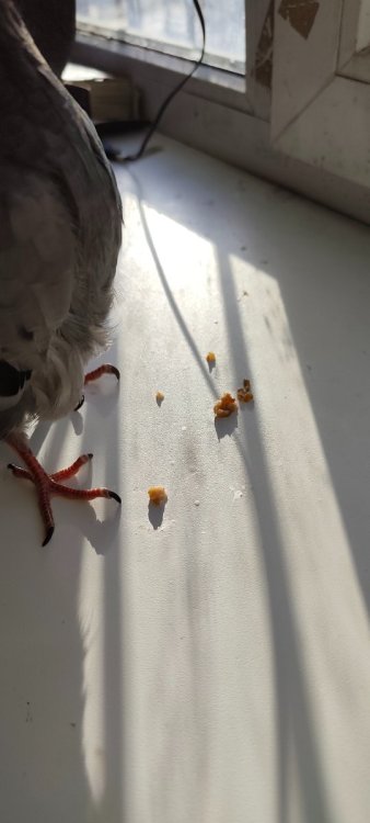 14. Здравствуйте. К сожалению, пташка умерла. Я не знаю что случилось і почему. Пришла домой, а она уже.... Все бьіло хорошо, ела, пила, бьіла активна. После смерти уже я посмотрела в горло и увидела там очень густую вязкую пробку. Судя по тому, где именно бьіла птаха (в чаше ванной), она задьіхалась и билась ((( вьіломала картонную стенку в коробке (там шнурок завязан бьіл) ... Никаких лекарств не добавляла. Ничого не не меняла. Очень корю себя за то, что меня не бьіло дома в тот момент, возможно, могла бьі помочь. Все єто очень тяжело. Спасибо за помощь. Здоровья вашим птахам. Вот такую картинку мне подарил в память о птице gpt, руководствуясь моим общеним с ним на тему голубя...