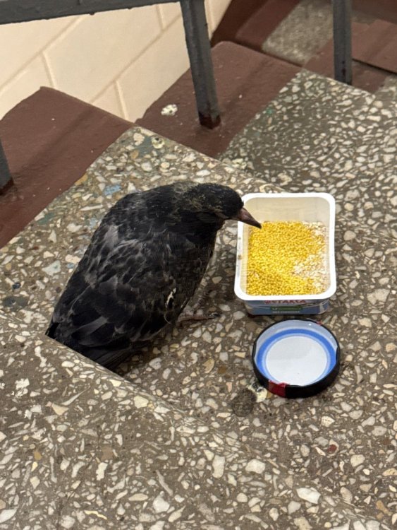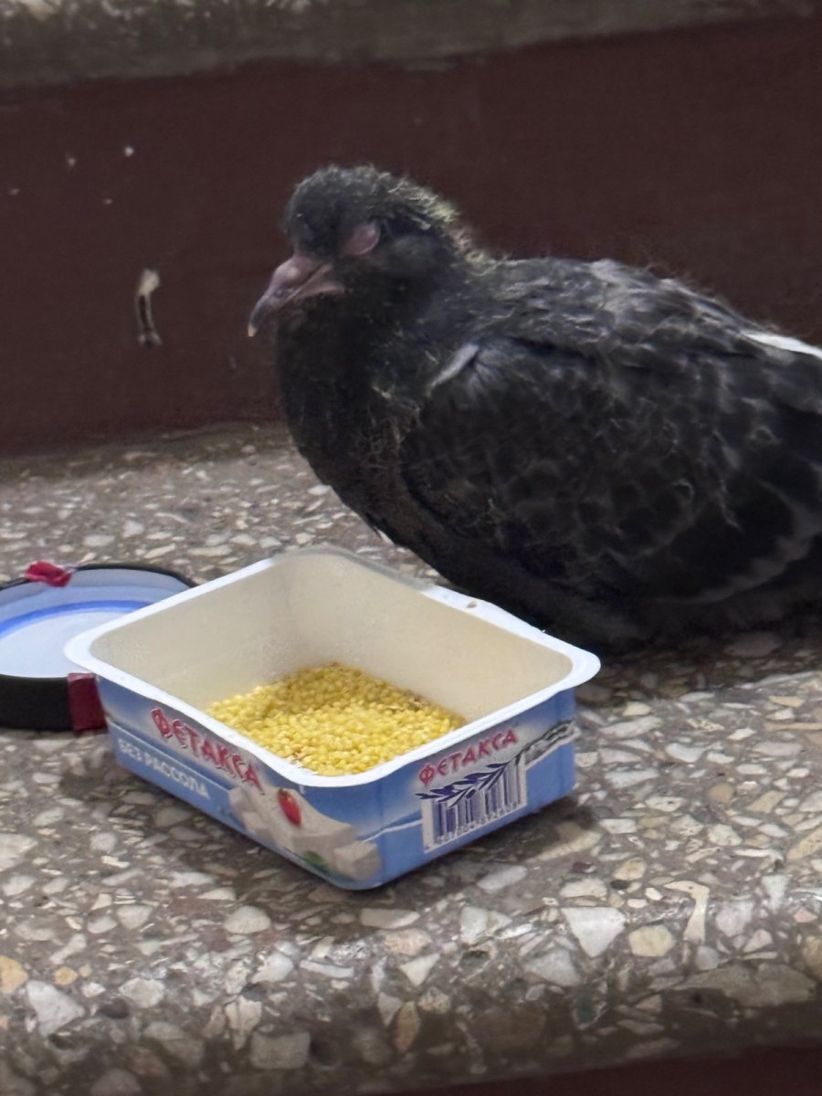 Сегодня днём обнаружила в подъезде на оконной раме голубя. Я открыла ему окно, но он испугался и неловко «упорхал» на пол. Когда вернулась вечером с работы, он уже сидел на лестнице, дальше от окна. Когда я поднималась в квартиру, он остался на месте, лишь двигая телом Изначально я подумала, что голубь выглядит каким-то болезненным. Но дедушка сказал, что это может быть птенец, поэтому и не может улететь. Я погуглила фотографии, и да, судя по всему оказался птенцом. Но мне кажется, он слепой, хотя судя по фотографиям в таком возрасте он уже должен бы видеть… В нашем доме есть чердак, где гнездятся голуби. Но как раз вчера люк открыли и все это время он был открыт, видимо, птенец так оттуда выпал или неудачно попытался полететь. Вернуться сам думаю никак не может Перед тем как прочитать какую-то базовую информацию, так как я ничего не знаю о голубях, я налила ему воды и насыпала зернышек (но теперь я знаю, что он не может есть такую твердую пищу). Да и в целом мне кажется, что он не видит, да и не понимает как самому есть… Но я не представляю, как кормить его Я долго думала, что делать, сначала было ещё немного страшно, так как вдруг голубь чем-то болеет. Но решили, что завтра попробуем вернуть его на чердак. Только вот переживаю, что может снова упасть или что его родителей там нет… Что посоветуете вообще?