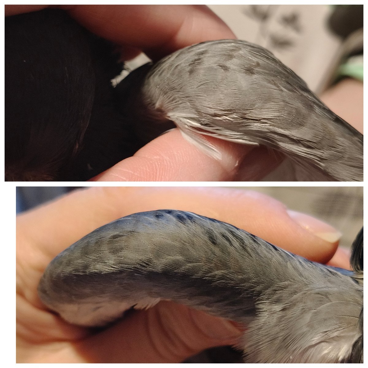 Подскажите пожалуйста, всё ли в порядке с крыльями??? Обнаружила сейчас, что левое крыло чуть ниже, правое чуть выше, не критично, но всё же... Крыло не висит. Но с пола на подоконник в клетку чуть не залетел. Опустился на батарею. Прощупала оба крыла... На правом суставе крыла хорошее такое уплотнение... Как после удара или ушиба... Ни ранки, ни крови нет. Уплотнение горячее на ощупь, Нет, на шарики оспы или подагры не похоже... Как от удара. Мог голубь повредить крыло об клетку??? Он бьёт крылом, когда я его пытаюсь достать, дать лекарство или накормить. А ещё крыло правое как-то не до конца раскрывается, больной сустав болит. Помогите советом пожалуйста! На что это может быть похоже и как лечить!