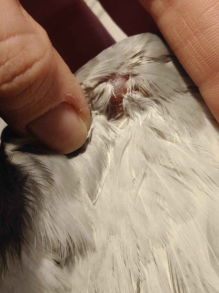 На левом крыле, припухлость. Описка. Вот и причина отказа от еды нашлась..