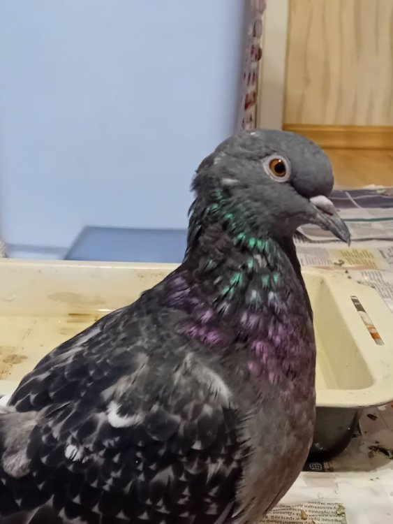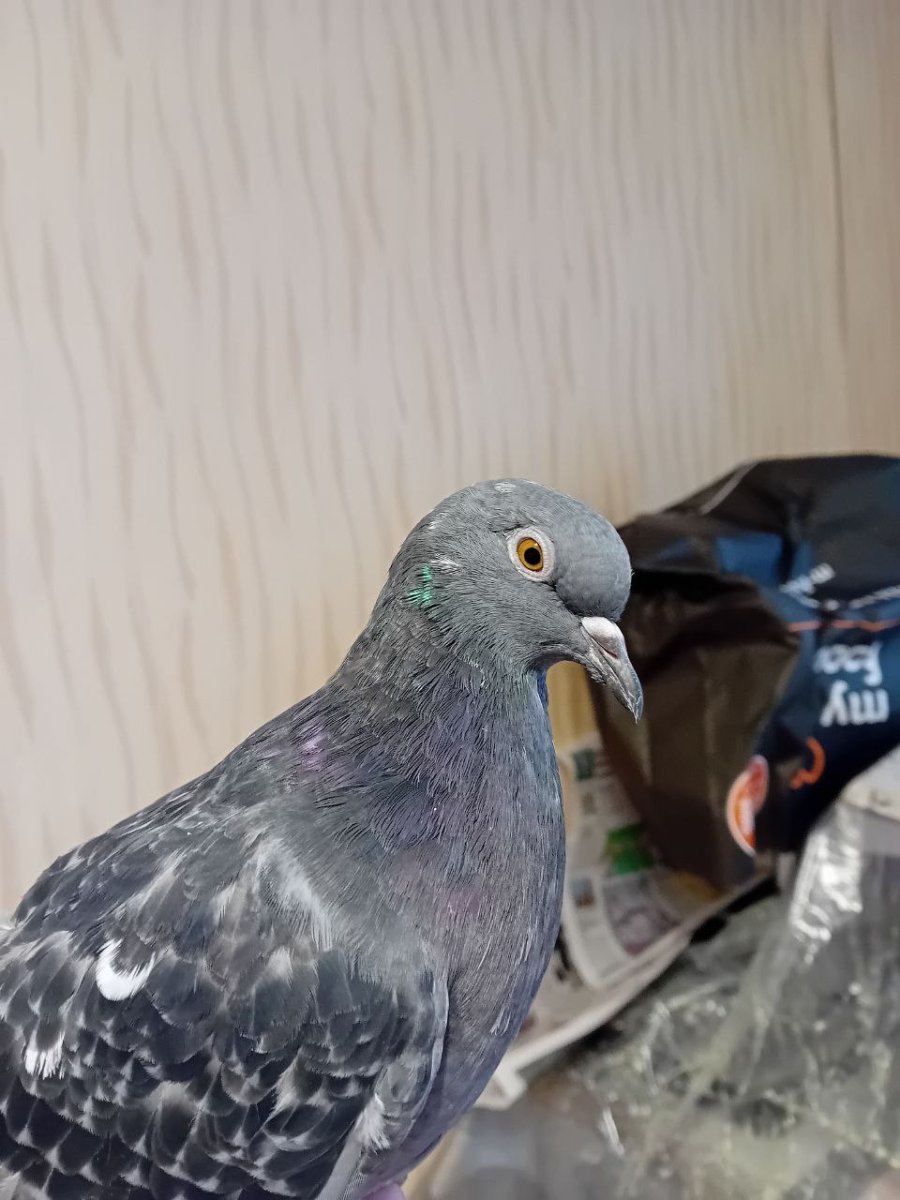 Доброго дня всем! Залетел на балкон голубь, дышит часто, чуть походил и сел в угол, в темноте. Утром надеюсь, что смогу отвезти его в птичий шелтер (уже отвозила туда ворону), но может сейчас сможете дать какие-то советы. Перед тем, как посадить в коробку, включили свет в комнате и он перешел сам в темное место. Посадила его в коробку, положила воду в отрезанной бутылке и положила чуть риса, дно простелила бумажными полотенцами плотно, когда клала в коробку активно вырывался, крылья работают, пытался улететь и убежать. Огромное спасибо! Прилагаю фото ещё без коробки.