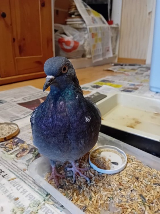 @tachi рентген нужно показать @Zosia чем кормить и что НЕЛЬЗЯ https://www.mybirds.ru/forums/topic/111964-sizarikinarodru/ как кормить если не ест сам https://www.mybirds.ru/forums/topic/34206-prinuditelnoe-kormlenie/ как держать дома https://www.mybirds.ru/forums/topic/122247-golubi-tozhe-domashnie-pitomtsy/ когда начнёт летать чтобы не бился об стёкла познакомьте со окнами и зеркалами: поднесите к стеклу так чтобы коснулся грудью и клювом а затем дайте потрогать самому если на приёме у ветеринара случайно окажется коновал предлагающий усыпление на усыпление НЕ соглашайтесь (бывают коновалы которые сразу придумывают надуманные причины для платного усыпления) ВНИМАНИЕ при любых манипуляциях с птицей голову держать ВЫШЕ зоба чтобы случайно не захлебнулся содержимым (если же нужно например для рентгена уложить птицу на спину то зоб должен быть пуст для этого за три часа до переворачивания на спину НЕ кормить и НЕ поить) ВНИМАНИЕ при кровотечении греть НЕЛЬЗЯ раны промывать хлоргекседином (можно мирамистин) йод, спирт и зелёнку НЕЛЬЗЯ из-за химожогов очень тонкой нежной кожи кровь (НЕ на голове!) останавливать перекисью водорода (ВНИМАНИЕ БЕРЕЧЬ глаза) ВНИМАНИЕ сушить или греть феном птиц НЕЛЬЗЯ птицы очень легко травятся запахами горячего пластика потому что их лёгкие способны дышать разряжённым воздухом на огромной высоте пример назначений при лечении вертячки -