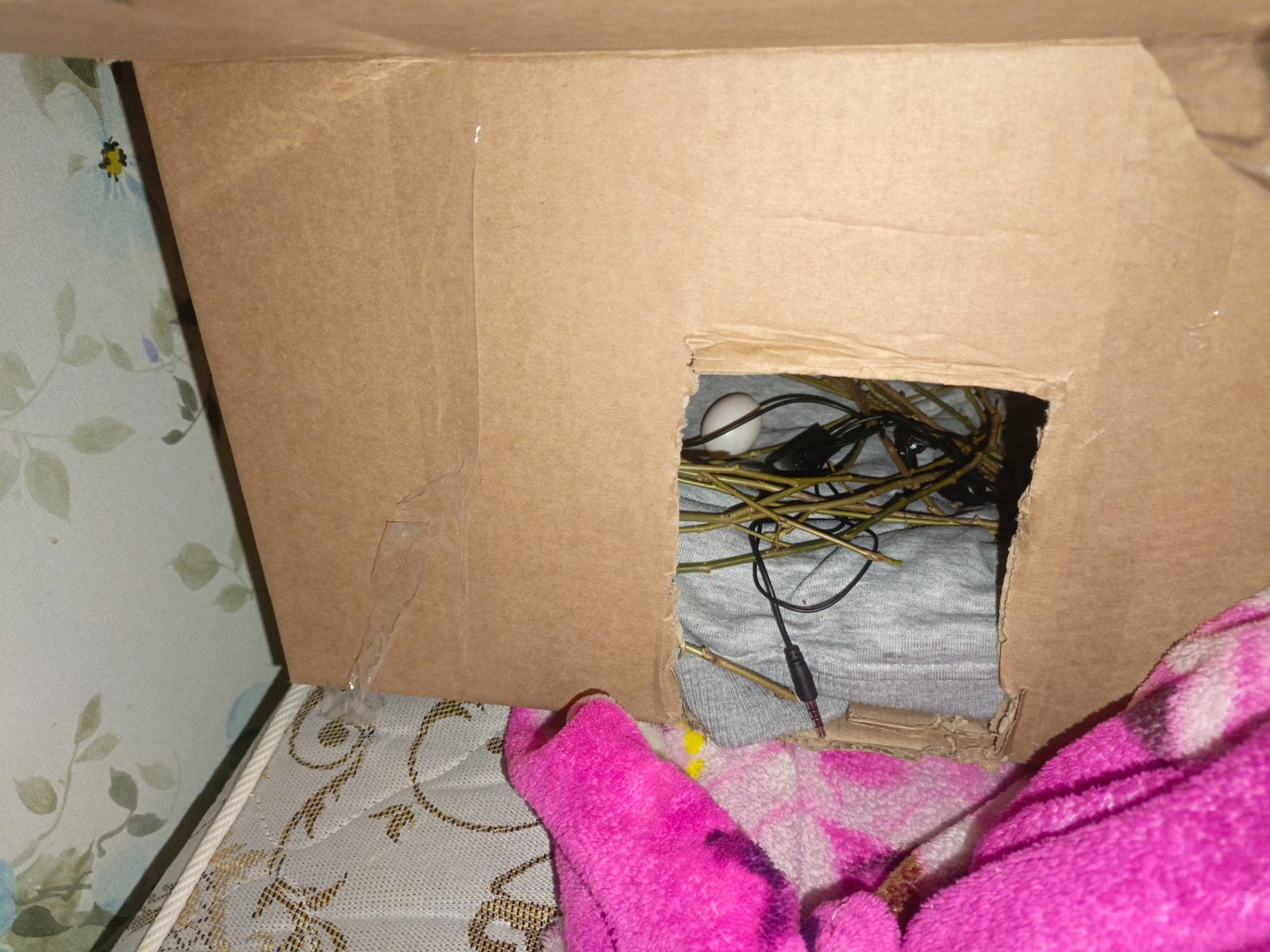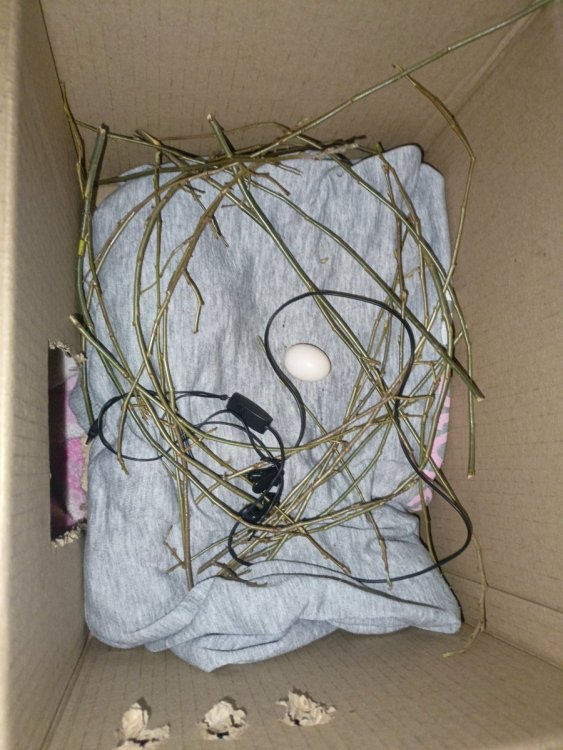 @Vitek666 @маленький принц Моя когда второй раз снеслась на кровати я в её присутствии взяла яйцо и понесла туда где сделала ей гнездо из вязаного шарфа ..она увидев что яичко похищают полетела за мной \\я положила его туда куда нужно она немного покипишевала около меня естественно а потом на него уселась уже там куда я его положила .И коробку лучше наверное полдожить так чтоб открытое место в коробку вход был не сверху а сбоку чтоб она могла спокойно туда подлететь и зайти ..потому что думаю что сверху налетать и садиться на яйцо ей будет неудобно потому что размах крыла будет мешать..а так она может спокойно выйти из коробки и зайти .Положите туда что-то мягенькое чтоб ей было удобно сидеть материнский инстинкт должен сработать ..попробуйте так сделать