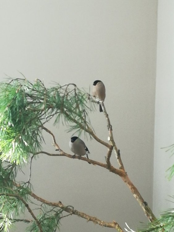 Морковь тертую посыпаю немного кормом Рио, чтоб хоть немного попадало, в чистом виде не хотят. Яблоко игнорируют. Ранее пробовал размороженные клюкву и бруснику - сразу выплюнули и не прикасались более. Заметил один момент - иногда сидя на ветке поднимает лапу вверх и прижимает к груди. Так и сидит какое то время. Зимой на воле могут лапы греть, а в тепле что может значить? На фото верхняя птаха