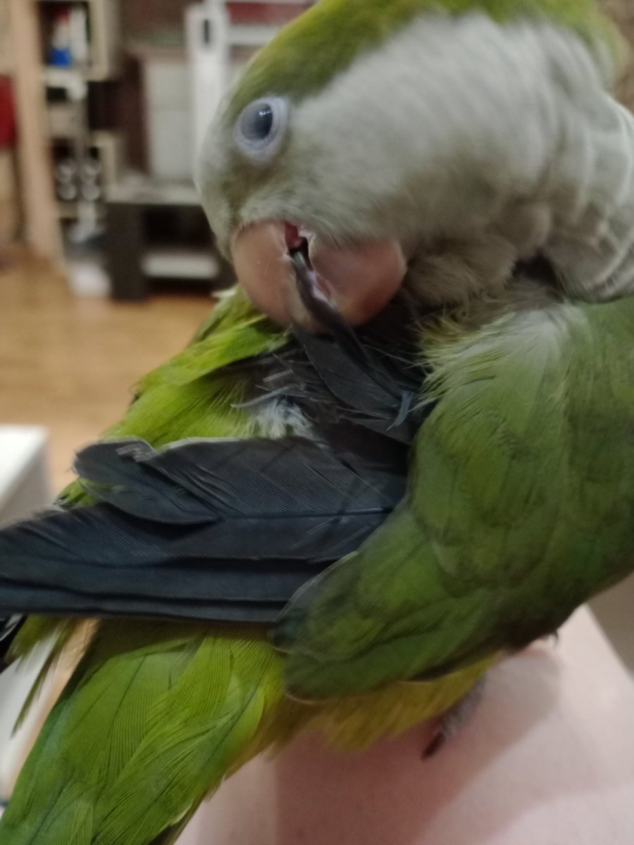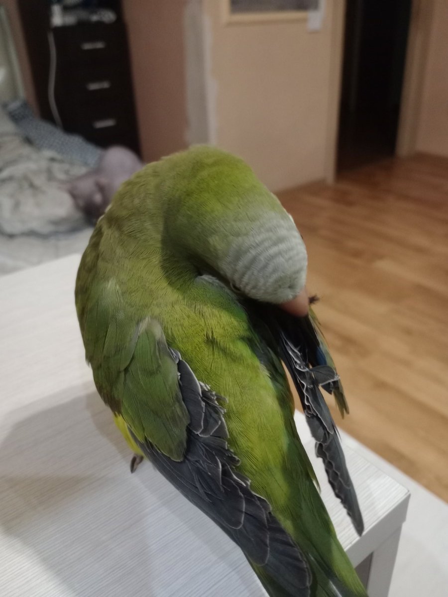 Здравствуйте скажите пожалуйста попугай монах квакер возрост 1.5 года.вот вчера такого не было вроде. А сегодня попугай наш монах квакер начал грысть колупаться в крыльях и спине. Чешит. Грызет. Что то достает. Выподают маленькие волоски. Крылья какие то стали не прямые а лахматые. Завёрнутые. Фото предоставлю. Подскажите пожалуйста что делать