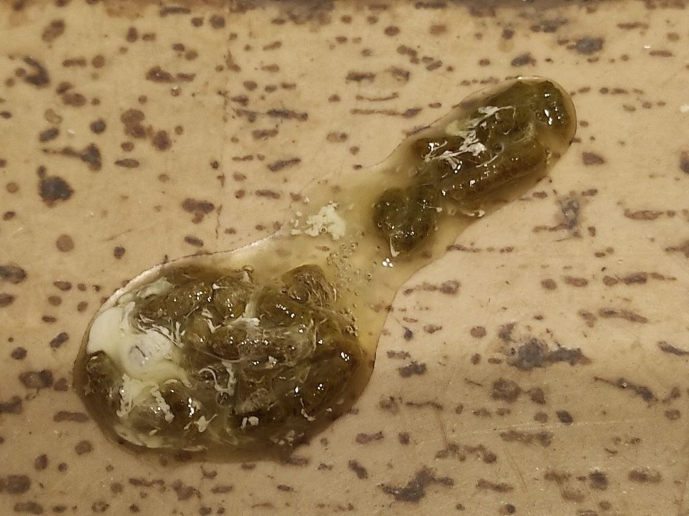 Показала Зосе, её ответ скопировала выше. Если проводить палочкой ватной, то он как держится. Но когда я его достала, он был мягкий. Нарост новый появился что, уже ушёл. Он отпадает спустя 1-2 дня. Мажу люголем, раствором бедатина Помет отличный практически. Последнее фото, что делала. Я работаю, новых не делала, чисто убирала. Но поноса нет. Ест активно пшеничную кашу. Добавила туда перловки. Лекарства не прекращаю. Снижать начала Панкреатин. Рвоты нет -