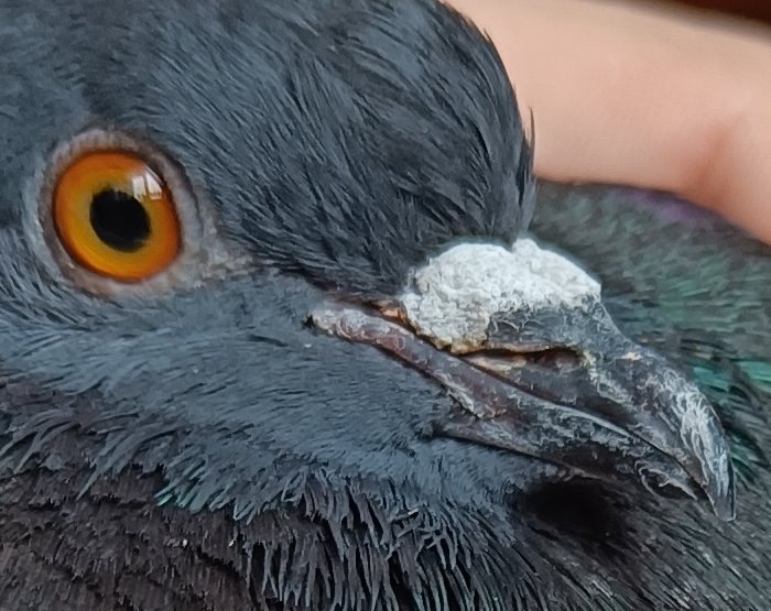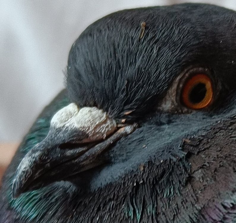 @Ильяна Смотрите, в этой теме пишут, что избыток мочевой кислоты должен быть отражен в копрограмме, но у меня ничего такого нет. Да и избытка белой фракции в помете не наблюдается\не наблюдалось. Опухших суставов и хромоты тоже нет. По этой штуке на щеках. Когда ее в первый раз смахнули, то у птицы помет улучшился на 2-3 дня. Я в этот день еще зеленую гречку у птицы забрал, поэтому поначалу думал, что улучшение помета произошло из-за исключение из питания гречки. Может там грибок какой (не кандида) на который лаборатория не сеет? И кстати, отчасти "выделения" (но не все) на клюве могут быть пролившимися лекарствами. Я птице спаиваю разведенный водой толченый Карсил. Вот на этих фото красные "выделения" в уголках клюва - это он. Может быть и в ноздрю снаружи что-то могло попасть - может у меня пальцы правой руки, которыми я держал клюв снизу, когда его открывал, немного в Нистатине допустим были.
