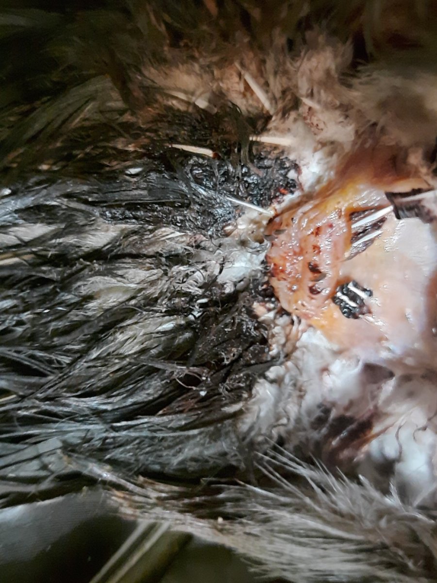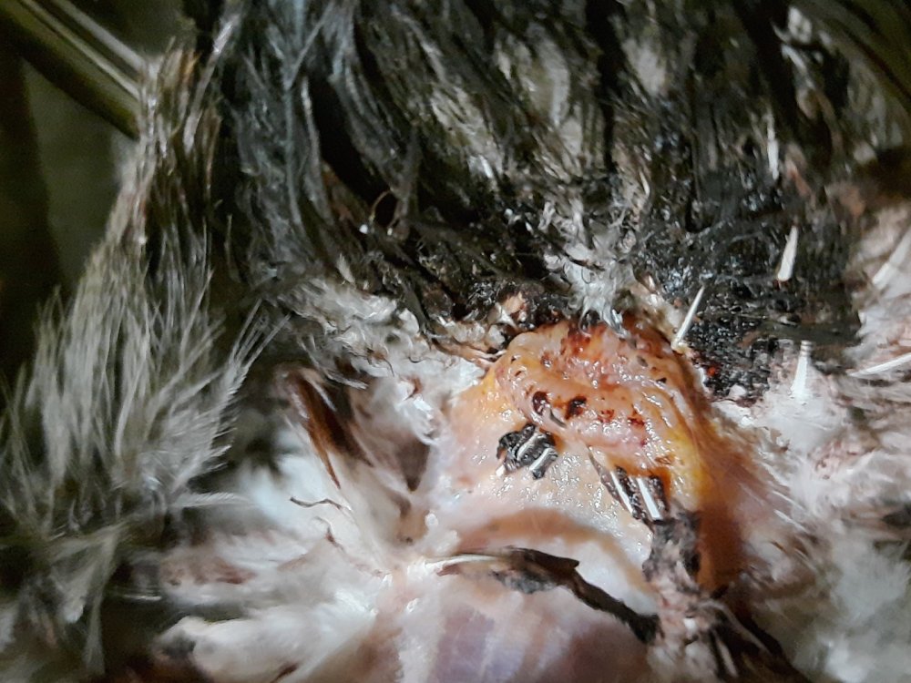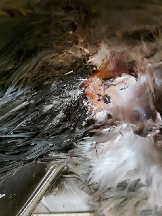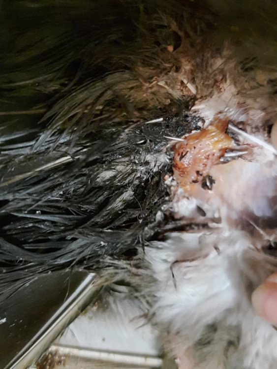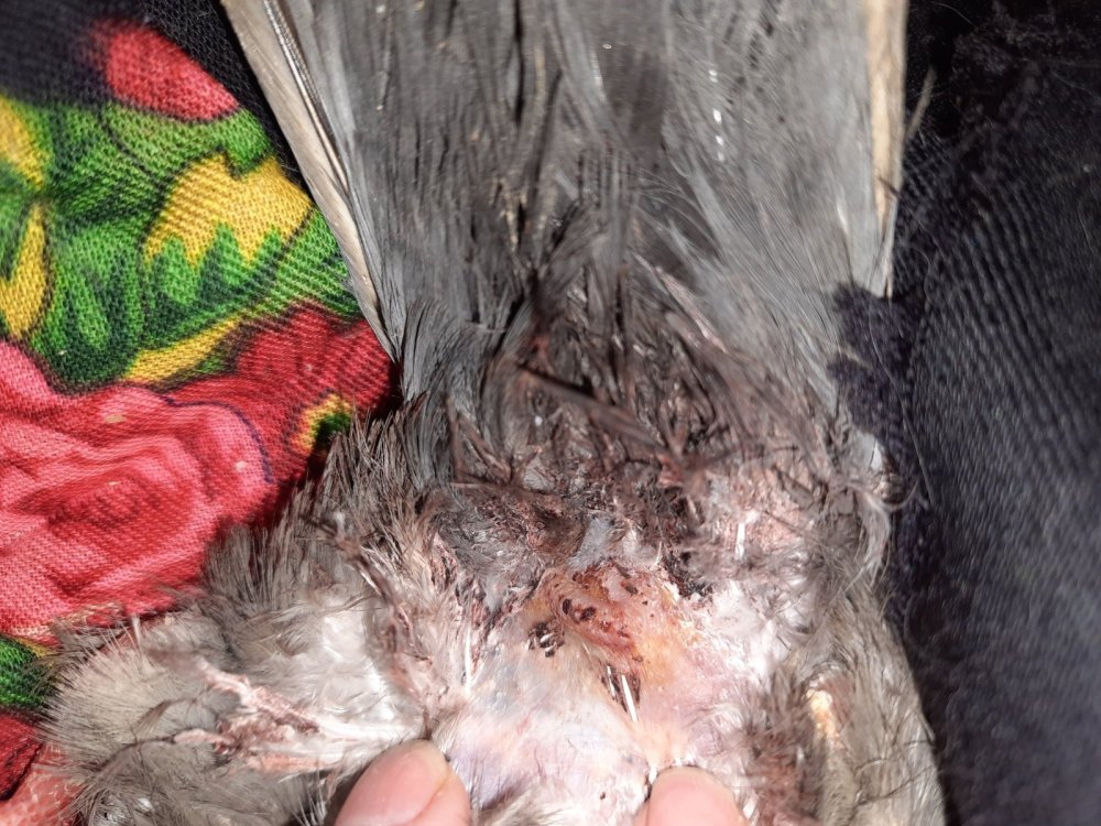 фото? СРОЧНО колоть внтримышечно цефтриаксон БЕЗ лидокаина (лидокакин птицы плохо переносят) колоть внутримышечно примерно вот сюда ВНИМАНИЕ в ту часть киля что ближе к попе колоть НЕЛЬЗЯ ВНИМАНИЕ при любых манипуляциях с птицей голову держать ВЫШЕ зоба чтобы случайно не захлебнулся содержимым при уколе иглу инсулинового шприца держать поближе к кости киля так чтобы если уколете не так игла упёрлась бы в кость чтобы не было синяков птицу держать так чтобы не дёрнулась при уколе для уколов лучше инсулинка с несъёмной тоненькой иглой после укола дать одну семечку без кожуры чтобы птиченька не обижалась (взрослому в день не более 10 семечек чтобы не посадить печень) от анаэробной инфекции ОБЯЗАТЕЛЬНО дополнительно метронидазол/метрогил к антибиотику ОБЯЗАТЕЛЬНО нистатин 500.000 единиц четверть таблетки с водой через шприц без иглы в клюв дважды в день желательно за 30-40 минут до еды на ножку смесь №1 шину долго держать НЕЛЬЗЯ уколите СРОЧНО внутримышено 0.1 мл инъекционно дицинона и 0.1 мл инъекционного викасола в поилку отвар крапивы или подорожника для улучшения сворачиваемости крови ВЫЖИТЬ и Здоровья Вашему голубю!