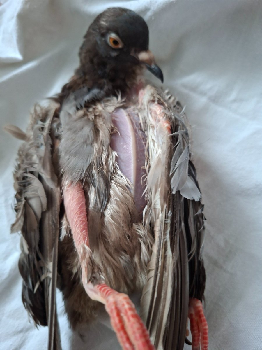 СРОЧНО! Голубя сбила машина. Вырван зоб!