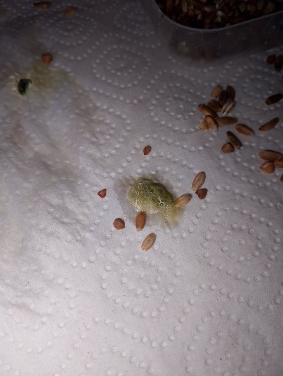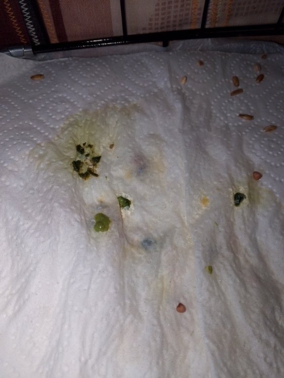 Короче, сегодня где-то в с 9:00 до 9:20 скормил ему ручную булгур, ложку чайную, немного кунжута и чуть-чуть гастролитов. Дал сверху панкреатин, половину дневной. Сейчас 13:10 - зерна еще в зобе. Понятно, почему он так мало ест. Уже 1.5 недели даю пробиотик, панкреатин с прошлой пятницы (в субботу по идее напонижение дозы). Какие карианты? Убираю все сухое зерно и перехожу на кашу в зоб? Или комочки? Распаренное зерно хоть могу, но смысла не будет, у меня дома сухо, оно за час высохнет, а он раза 3 кормушке подходит в день, то есть к моменту оно уже будет сухое.