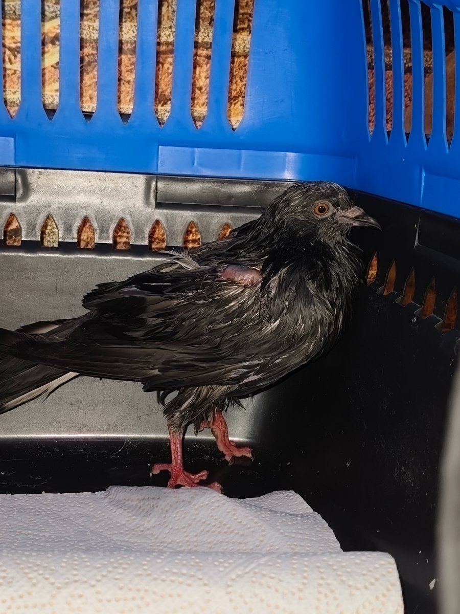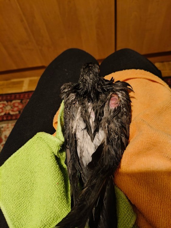 Здравствуйте! Найден очередной голубь. 07.02 идя на работу увидела у подъезда крутился в поисках еды небольшой голубок со слипшимися перьями на голове. Мысленно пожалела, но спешила на работу. А 8.02 идя вечером с работы, обнаружила этого же голубя на металлическом шкафу у подъезда. Видно ждал меня! Сколько там просидел, не известно. Но морозы сейчас по ночам до -16. Так как клетка занята другим жильцом, пришлось нового поместить в пластиковую кошачью переноску. Голубь маленький, худой и хилый на вид и на ощупь. Подросток? Перьевой покров слабый, много лысоватых мест. Вес- 250 грамм. Перья на голове, груди и шее сильно слиплись и засохли. Пришлось втирать крахмал в перья и затем купать со средством для посуды. Во время мытья выпадало много перьев. Попыталась накормить зерном. Но даже глотать не стал. Или в стрессе или ослаб. Перемолола зерно, сделала жидкую кашку, накормила через зоб (пшеница, перловка, чечевица, зелёная гречка, булгур, лён, кунжут, семечки и расторопша, а также молотая яичная скорлупа). Из лекарств дала Дирофен, Нистатин, Метронидазол, Глюканат кальция, витамины Vinka и Линекс. За сутки попыток самостоятельно поесть или попить не предпринял. Хотя миски с водой и с едой подвесила в переноске. Помёт голодный жидкий и зеленоватый, много воды. Глаза, клюв, ноздри чистые. Но! Купая, обнаружила достаточно большую припухлость на плечевом суставе. Аккуратно вскрыла, вышла вязкая прозрачная суставная жидкость. Продезинфицировала и обработала Бетадином и намазала смесью Лиотон+Кетопрофен. Дала Мелоксикам. Решила, что тоже травма от удара, как у моего нынешнего голубя. В понедельник вечером припухлость немного сохраняется, жидкости внутри больше нет, кожа вокруг приобрела зеленоватый оттенок. Возможно, перестаралась, когда надавливала, чтобы освободить ткани от жидкости. Ещё раз тщательно осмотрев голубя, обнаружила симметричную опухоль на том же месте, но с внутренней стороны крыла. Опухоль более рельефная и выпуклая, как бы нависающая. Аккуратно вскрыла её. Вместе с суставной жидкостью вышло достаточно много белой творожной массы. Располагалось внутри опухоли или нароста? (не знаю, как правильно) в виде отдельных участков. Постаралась максимально удалить содержимое припухлости. Творожная масса выходила местами вместе с кровью. Продезинфицировала и обработала. Обе опухоли были мягкие и прозрачные на вид. Без повышения температуры в этих местах. Других повреждений или опухолей больше не обнаружила. Уважаемые знатоки, помогите пожалуйста советом в диагнзоне и в лечении! Напомню, живу в Кишиневе, поэтому достать антибиотики без рецепта шансов нет вообще. Вес голубя - 250 грамм.