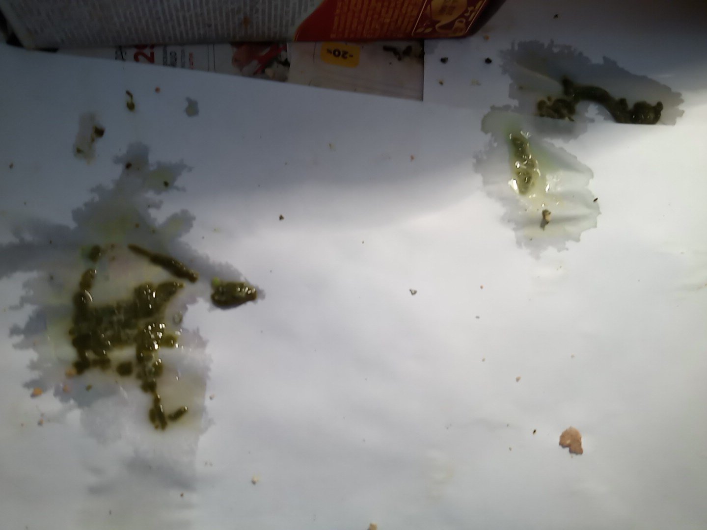 9. Зелень не ел, но да, раньше какашки были другого цвета. Также есть вопрос: как мне напоить его адсорбентами?(не дается в руки)